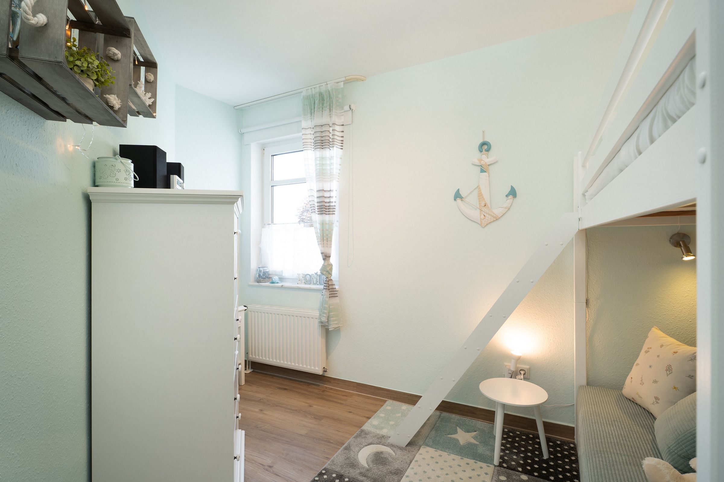 Schlafzimmer 2: 1 Hochbett (Liegefläche oben: 90x200 cm), Schlafsofa unter dem Hochbett (90x200 cm, ausziehbar bis 140x200 cm)