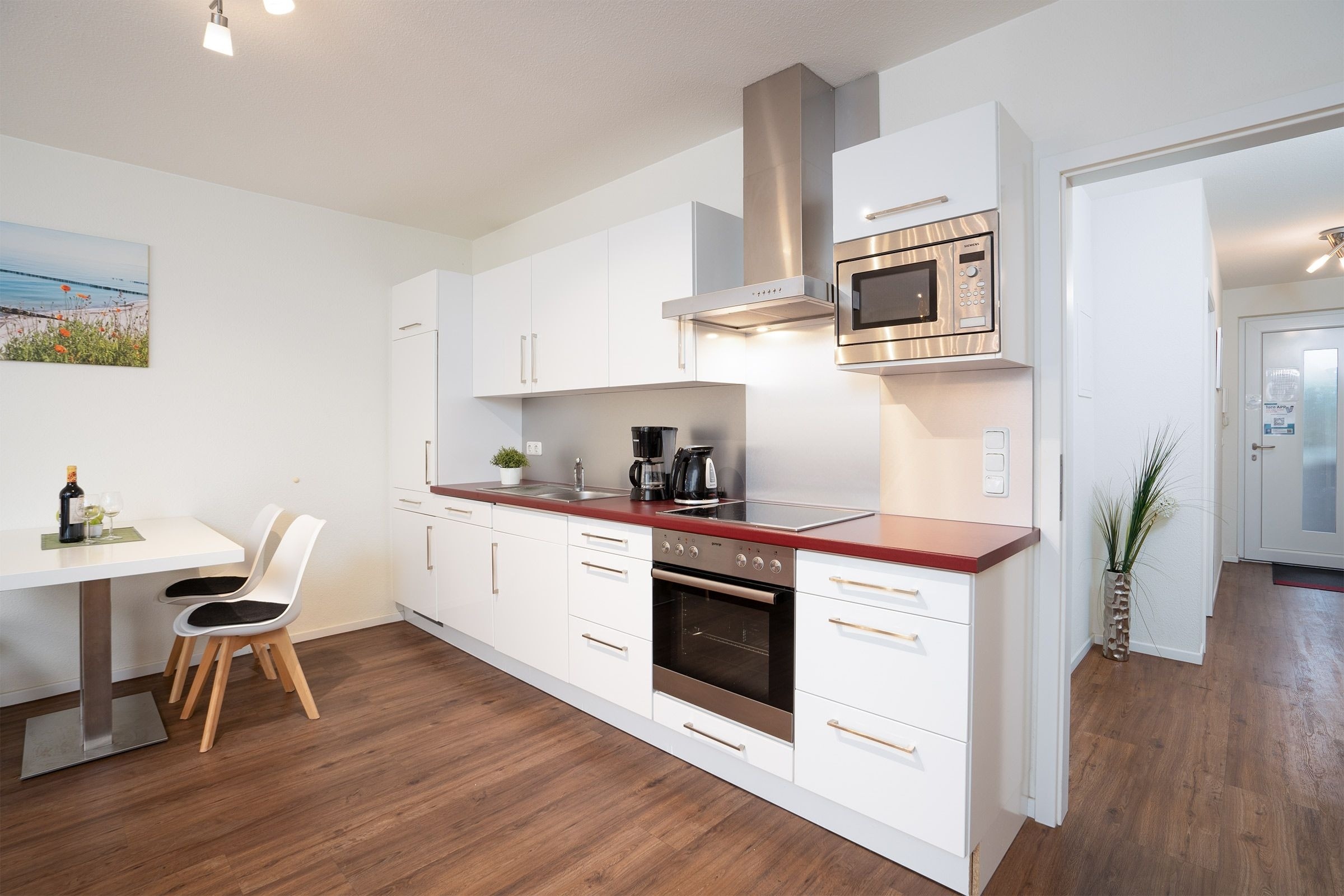 Strand und zentrumsnah gelegen ist die modern und geschmackvoll eingerichtete ca. 55 m² große 2-Zimmer-Ferienwohnung Domizil am Meer für max. 4 Personen im 1. OG.