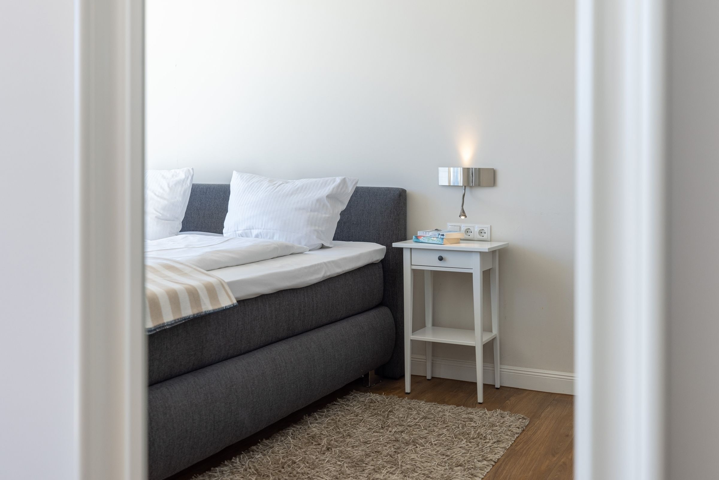 Schlafzimmer 2: 1 Boxspringbett (180x200 cm), Kleiderschrank, Verdunkelungsmöglichkeit