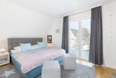 Schlafzimmer 1: 1 Boxspring-Doppelbett (2x 90x200 cm, durchgehender Topper), TV mit DVD-Player
