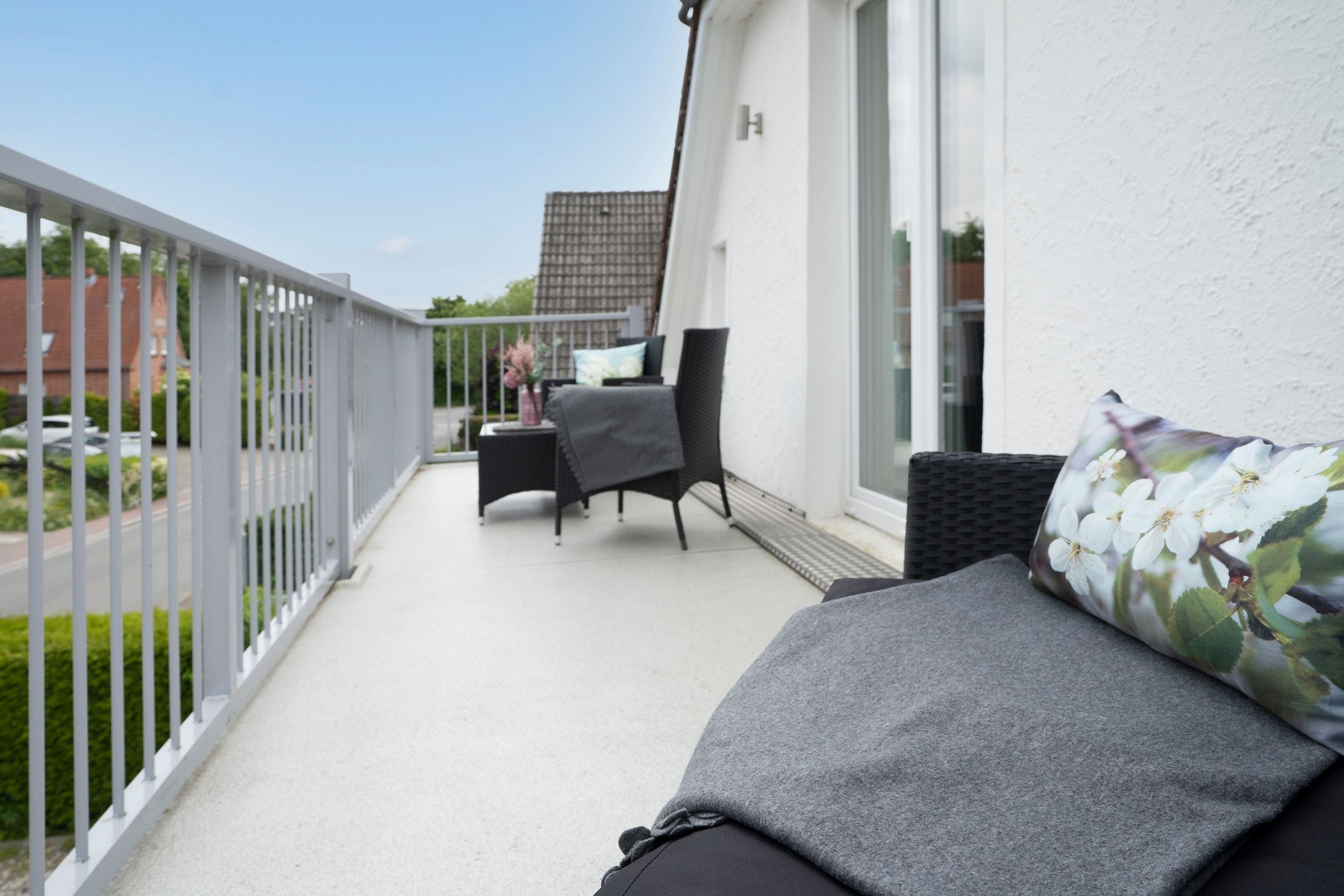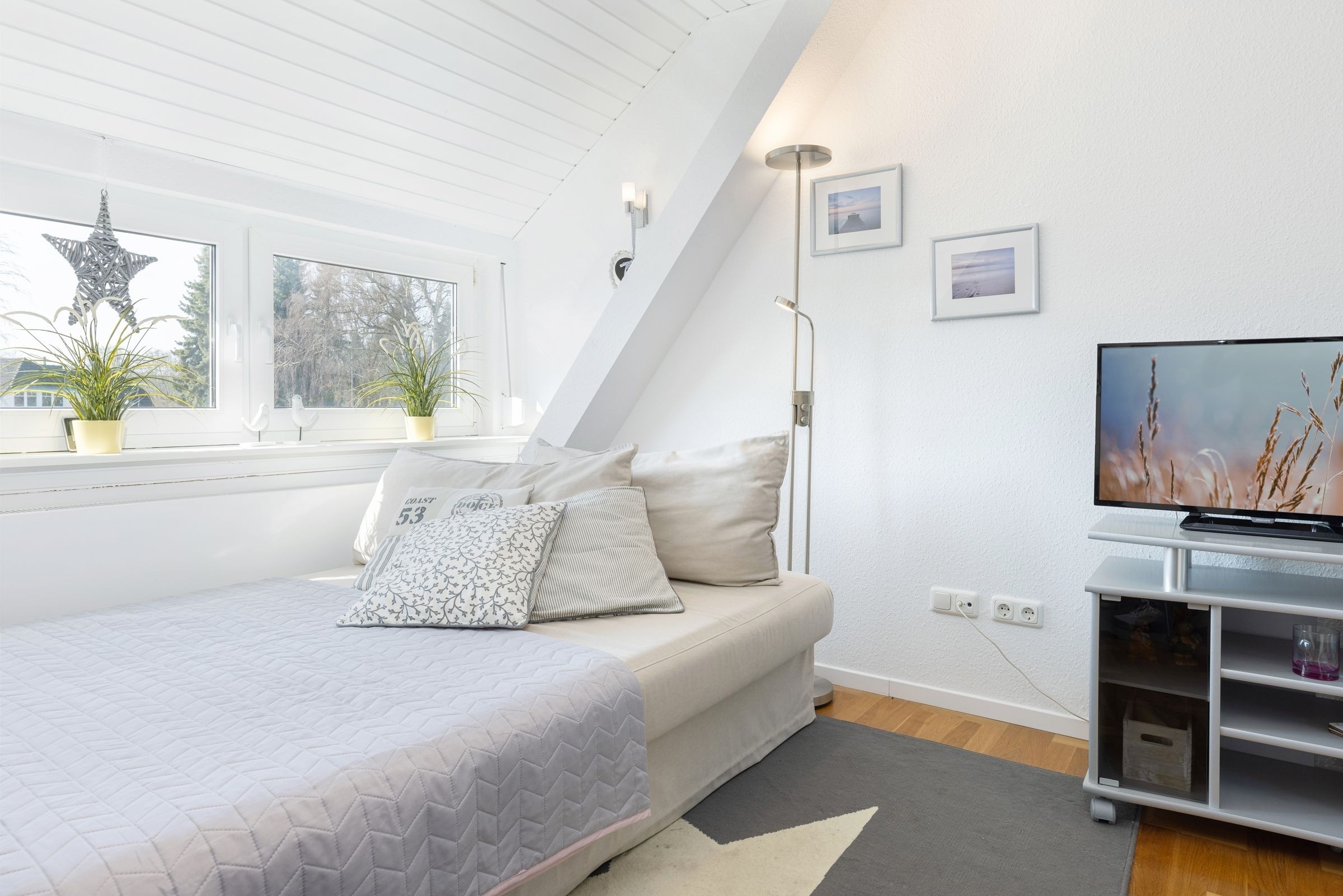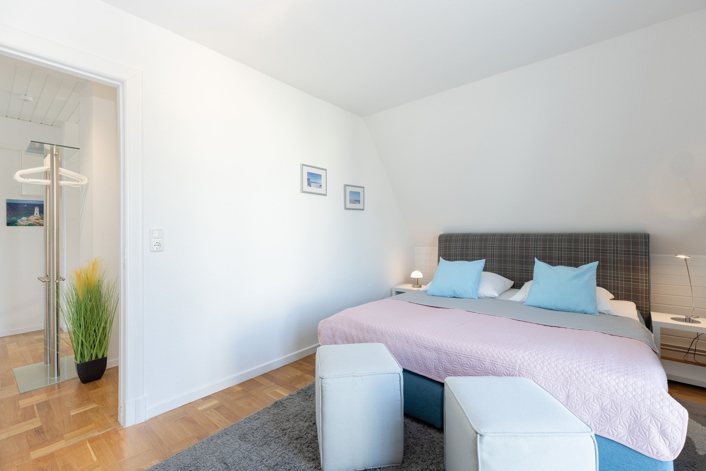 Ausgestattet mit 2 separaten Schlafzimmern, davon 1 Schlafzimmer mit gemütlichem und rückenfreundlichem Boxspring-Doppelbett (2x 90x200 cm, durchgehender Topper) und einem Kinderbett sowie TV und DVD-Player und 1 Schlafzimmer mit einem Einzelbett (90x200 cm). Von hier gelangen Sie durch den Flur in das Wohnzimmer mit TV, DVD-Player, Esstisch für 4 Personen und voll ausgestatteter offener Küche und in das moderne, hell geflieste Duschbad.