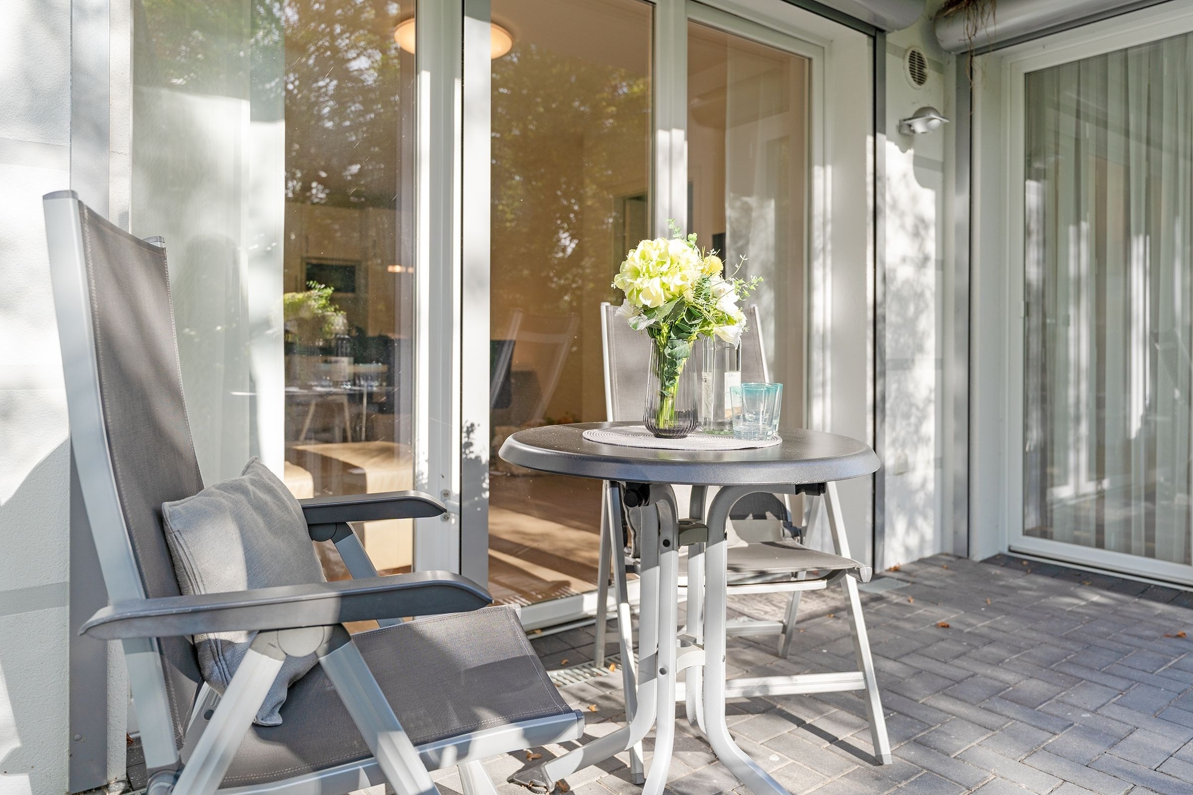 Strand und zentrumsnah gelegen ist die modern eingerichtete ca. 64m² große 2-Zimmer-Ferienwohnung für max. 4 Personen im Erdgeschoss des 2016 errichten Neubau Augustusbad.