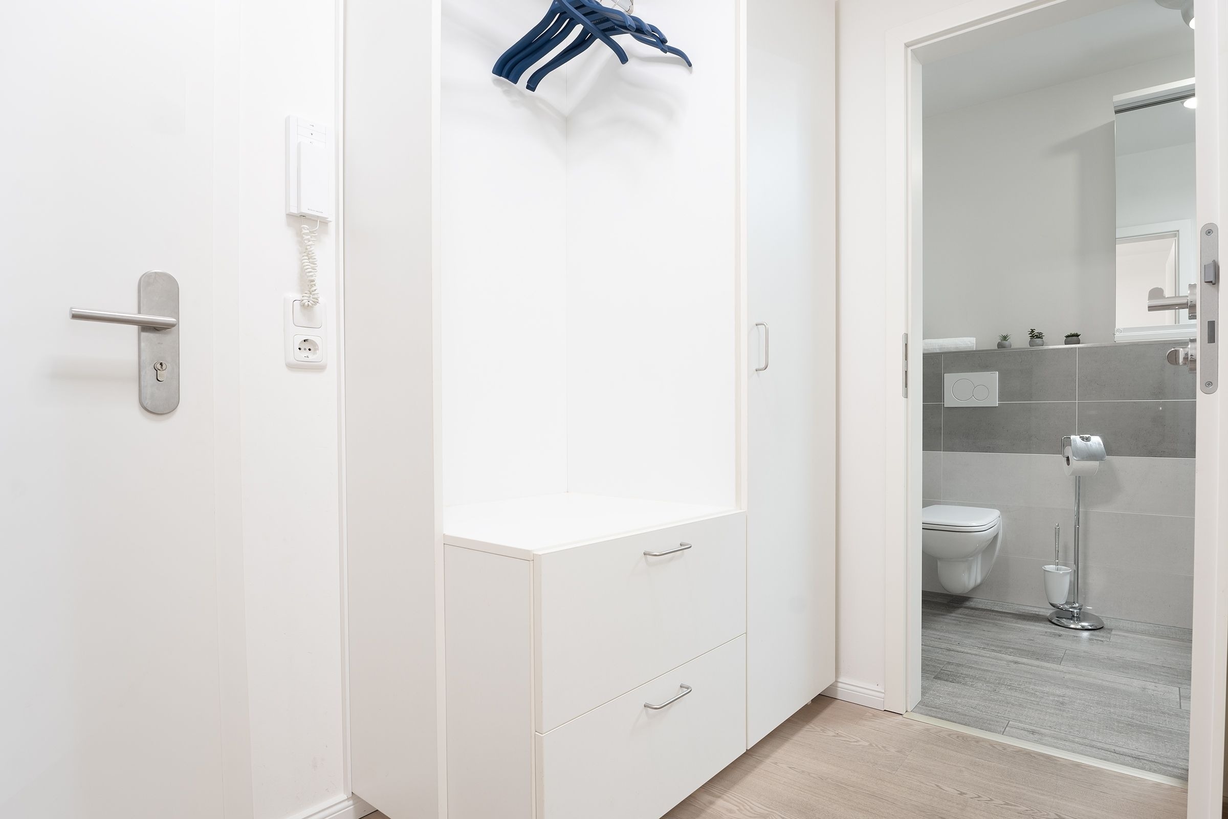 Bequem parken Sie Ihr Auto in der Tiefgarage des Augustusbad. Der Fahrstuhl bringt Sie von hieraus in das Erdgeschoss zu Ihrem Feriendomizil. Ein heller Flur mit Garderobe empfängt Sie.