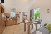 Dank moderner Ausstattung inklusive WLAN, Spülmaschine, Kaffeemaschine, Toaster, Mikrowelle, Wasserkocher sowie Waschmaschine und Trockner (zur gemeinsamen Nutzung) genießen Sie einen sorgenfreien Urlaub. Die voll ausgestattete Küche lässt keine Wünsche offen – ob Frühstück auf der Terrasse oder ein gekochtes Abendessen nach einem Tag am Meer. Einkaufsmöglichkeiten und medizinische Versorgung befinden sich ebenfalls in der Nähe – alles bequem erreichbar.