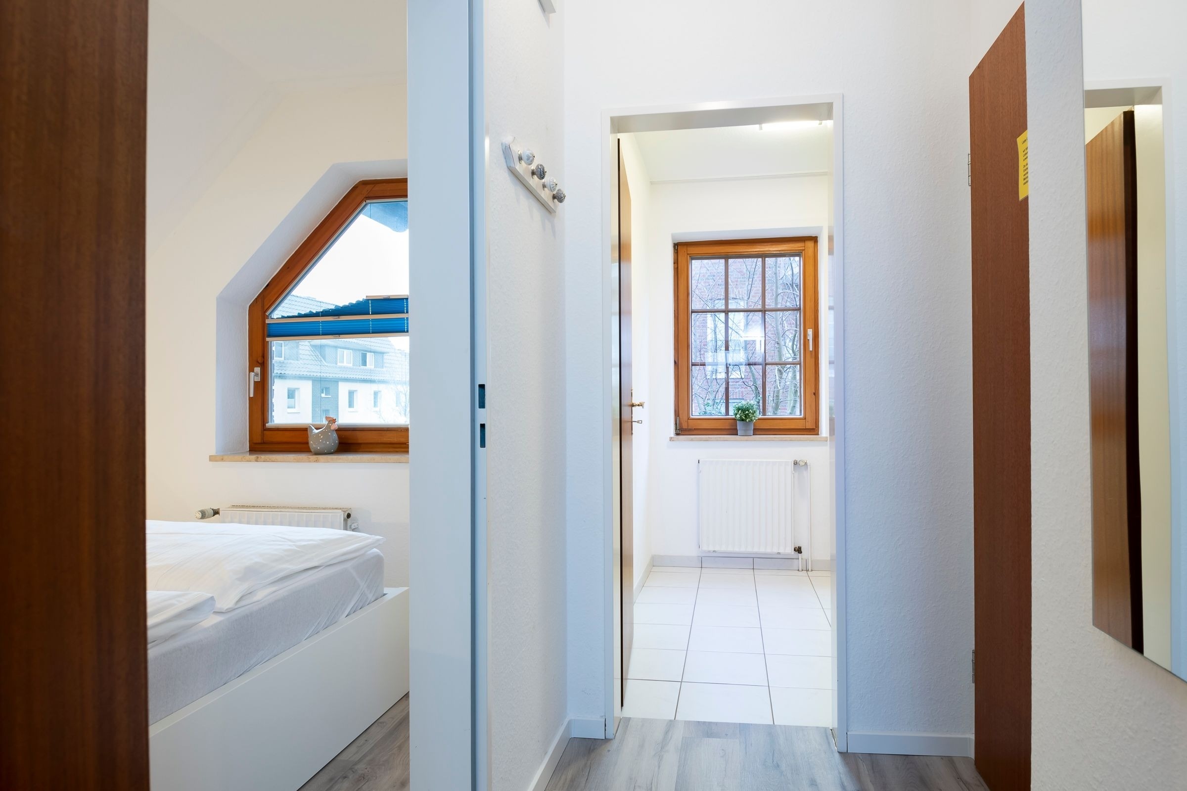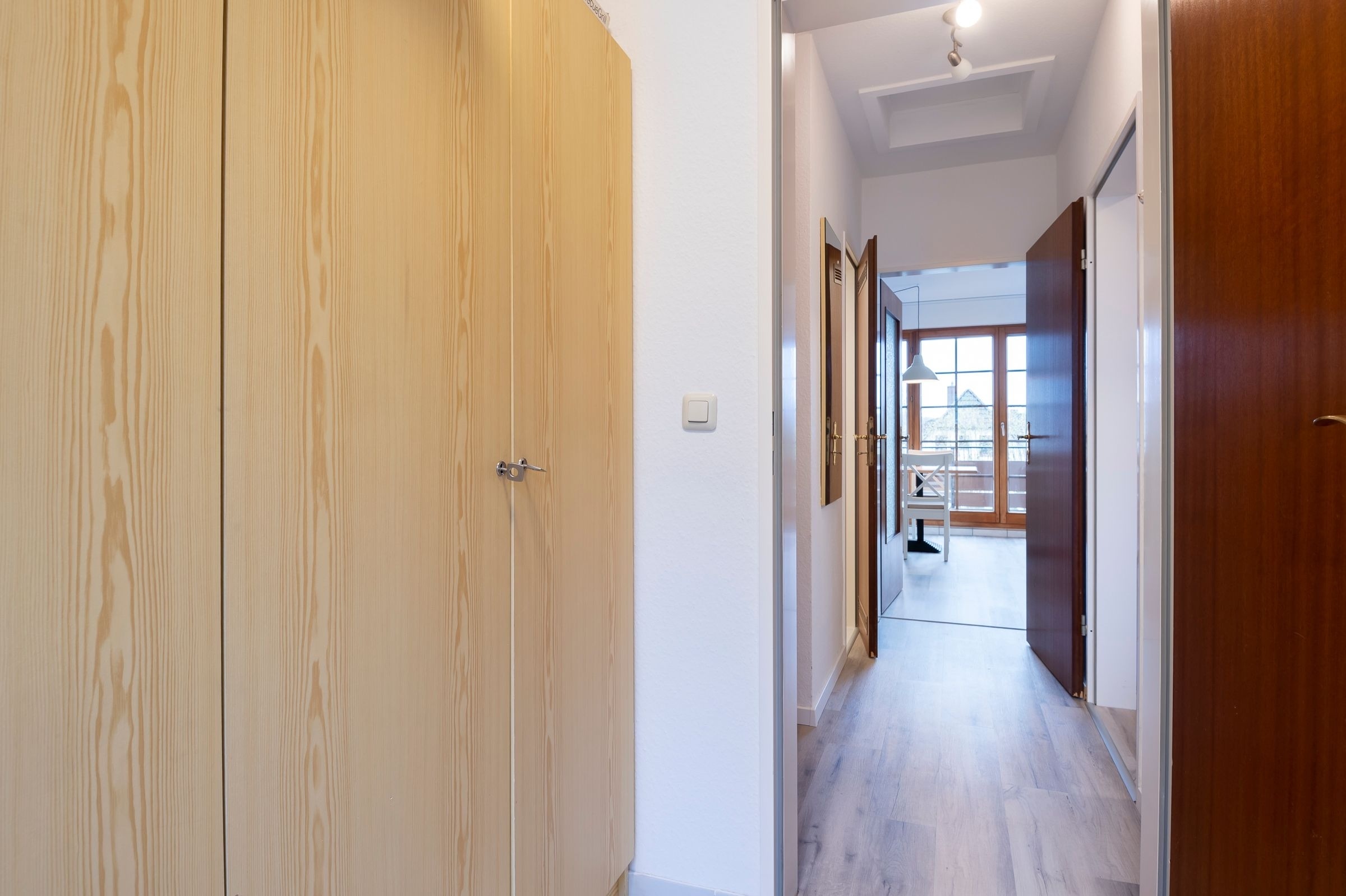 Durch den kleinen Flur gelangen Sie in das ca. 43 m² große Ferienappartement im 1. Obergeschoss für maximal 4 Personen.
