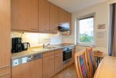 Das Appartement ist modern und sehr geschmackvoll eingerichtet. Es gibt zwei Schlafräume, welche über ein Doppelbett (2x 80x200 cm) bzw. über ein Einzelbett (80x200 cm) und ein Doppelstockbett (je 90x200 cm) verfügen. Ein Gästebett (Einzelbett/Klappbett) steht als 6. Schlafmöglichkeit bereit. Im Wohnraum befinden sich eine Couchgarnitur mit Sessel, eine Musikanlage und einen TV. Die offene Küchenzeile ist ausgestattet mit Kühlschrank inkl. Gefrierfach, 4-Plattenherd, Backofen, Geschirrspüler, Kaffeemaschine, Wasserkocher und Toaster. Der separate Esstisch ist sehr gemütlich und dient unter anderem als Essplatz. Die Terrasse bietet eine schöne Ausrichtung zum Garten und zur Sonne und verfügt über Gartenmöbel.
