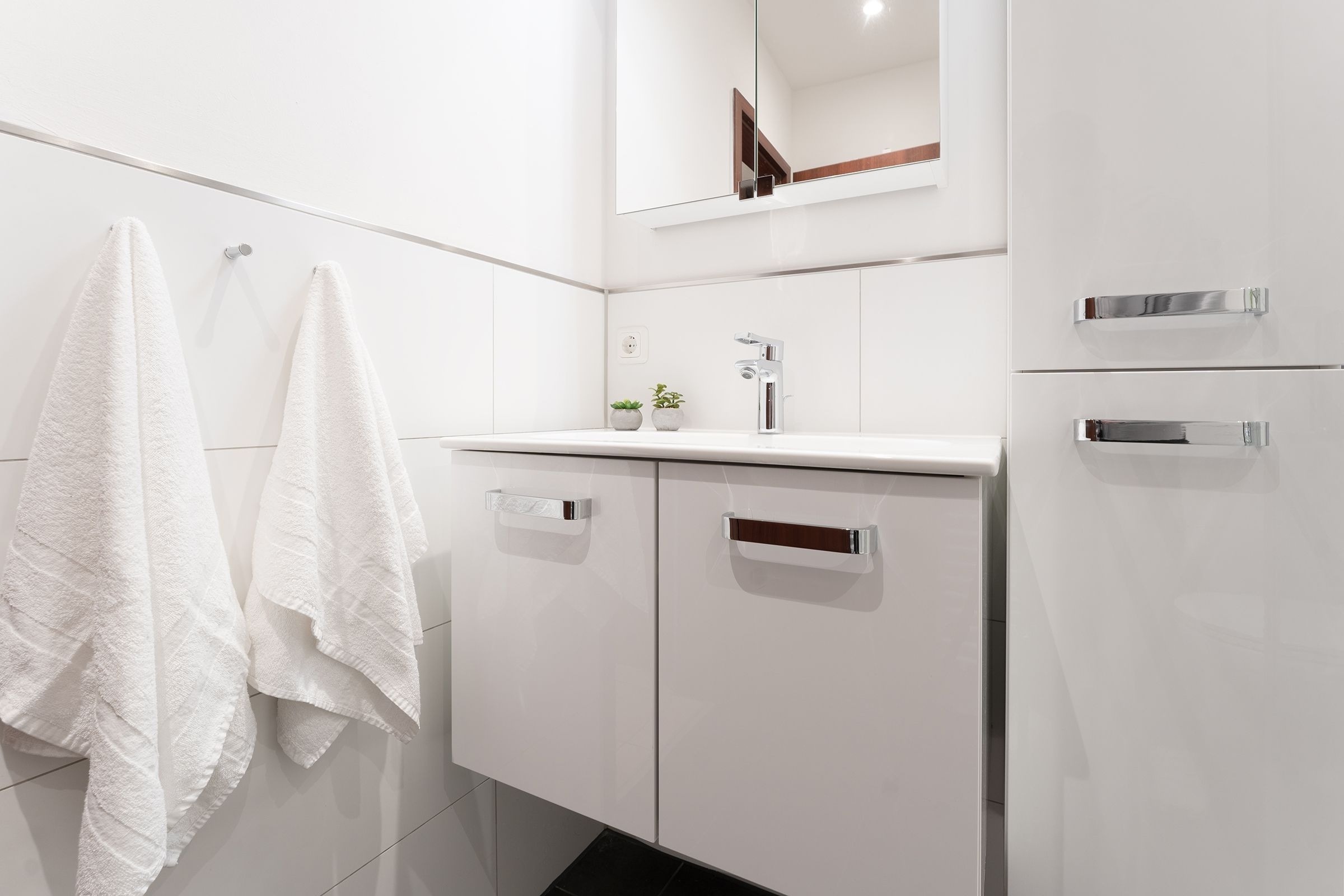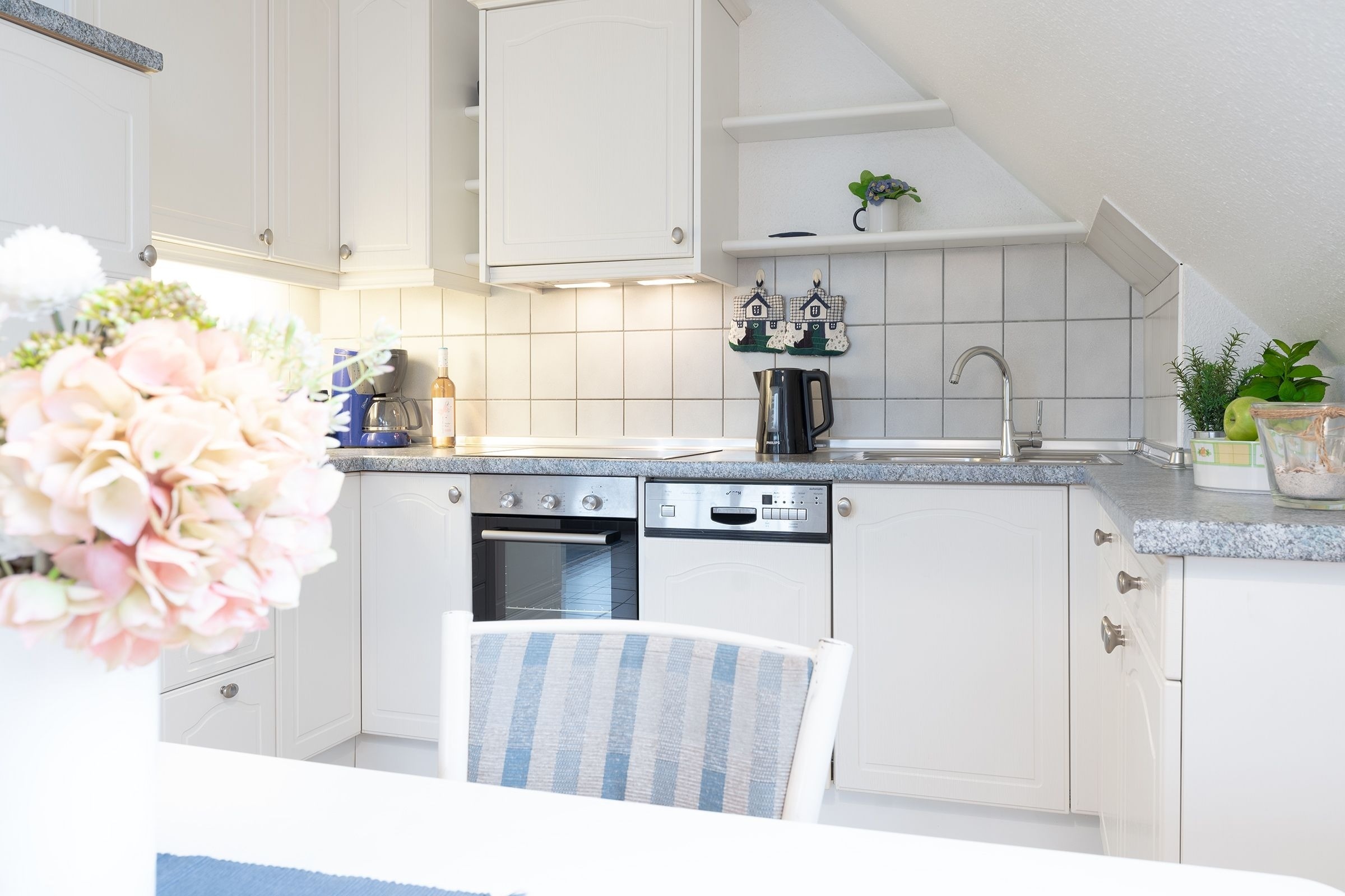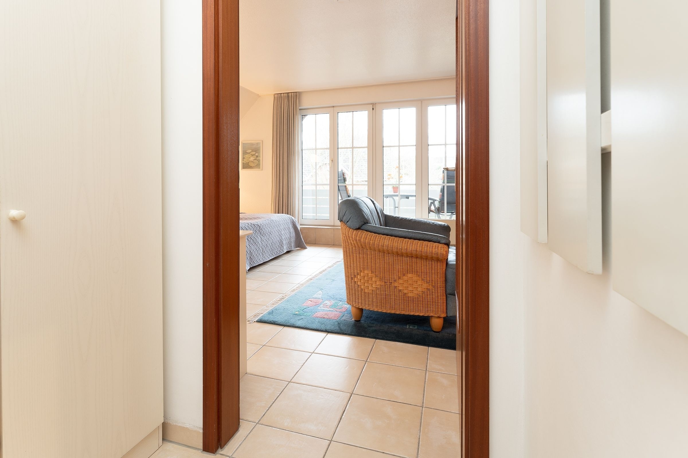 Dieses komfortable 1-Zimmer-Appartement hat ca. 38 m² und bietet Platz für bis zu 2 Personen. Es ist modern und sehr geschmackvoll eingerichtet. Der kombinierte Wohn-/Schlafraum verfügt über ein separates Doppelbett (2x 80x200 cm) und eine Couchgarnitur mit zwei Sesseln. Darüber hinaus finden sie hier eine Musikanlage und ein LED-TV. Die Küchenzeile ist ausgestattet mit Kühlschrank mit Gefrierfach, 4-Plattenceranherd, Backofen, Geschirrspüler, Kaffeemaschine, Wasserkocher und Toaster. Der Wohnraum verfügt über einen Esstisch. Der Balkon bietet eine schöne Ausrichtung in Richtung Sonne und verfügt über Gartenmöbel.