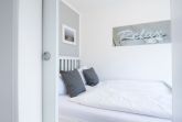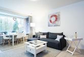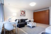 Bequem parken Sie Ihren PKW hinter dem Appartementhaus, jetzt sind es nur noch ein paar Schritte bis zu Ihrem Urlaubsdomizil. Mit dem Fahrstuhl oder über das Treppenhaus gelangen Sie in der Ferienwohnung. Sie öffnen die Wohnungstür und sind gleich in Ihrer modernen Küche. Die separate gut ausgestattete Küche lässt Sie problemlos kleinere Gerichte zuzubereiten. Hier sorgen Alltagshelfer wie Mikrowelle und Spülmaschine für gute Laune, zudem gibt es zusätzlich zur regulären Kaffeemaschine eine Kaffee-Kapselmaschine für frische Kaffeevariationen zum Frühstück. Das Duschbad liegt rechts neben dem Flur. Der Wohn- und Schlafbereich ist mit einem Schrankbett (für 1 Person), Sessel, Sofa und einen Essbereich eingerichtet. Von hier aus haben Sie einen Blick ins Grüne, können Ihr Frühstück auf dem Balkon genießen oder es sich an lauschigen Sommerabenden mit einem Buch gemütlich machen. In Ihrem Schlafzimmer erwartet Sie ein Doppelbett (160x200 cm), dort können Sie ungestört träumen. Verdunklungsplissees dunkeln das Schlafzimmer ausreichend ab.