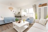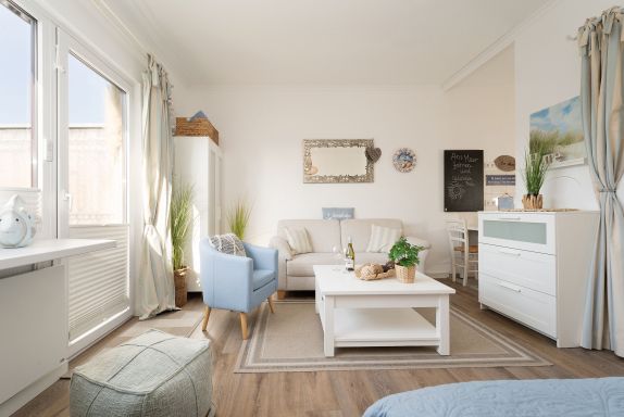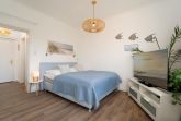 Von Ihrem Wohn-Schlafbereich mit Doppelbett (180x200 cm), Sofa, Sessel und Fernsehecke abgehend, befindet sich die angrenzende Küche (separat, jedoch mit offenem Zugang) die mit guter Ausstattung vom Ceranherd bis zur Spülmaschine begeistert. Vom Wohnbereich aus geht es direkt auf den möblierten Balkon, eine Markise schützt vor zu starker Sonneneinstrahlung. Starten Sie in den Tag in Ihrem freundlichen Duschbad. Ihr Feriendomizil ist durchgehend geschmackvoll ausgestattet und hat ein angenehmes Wohnambiente.