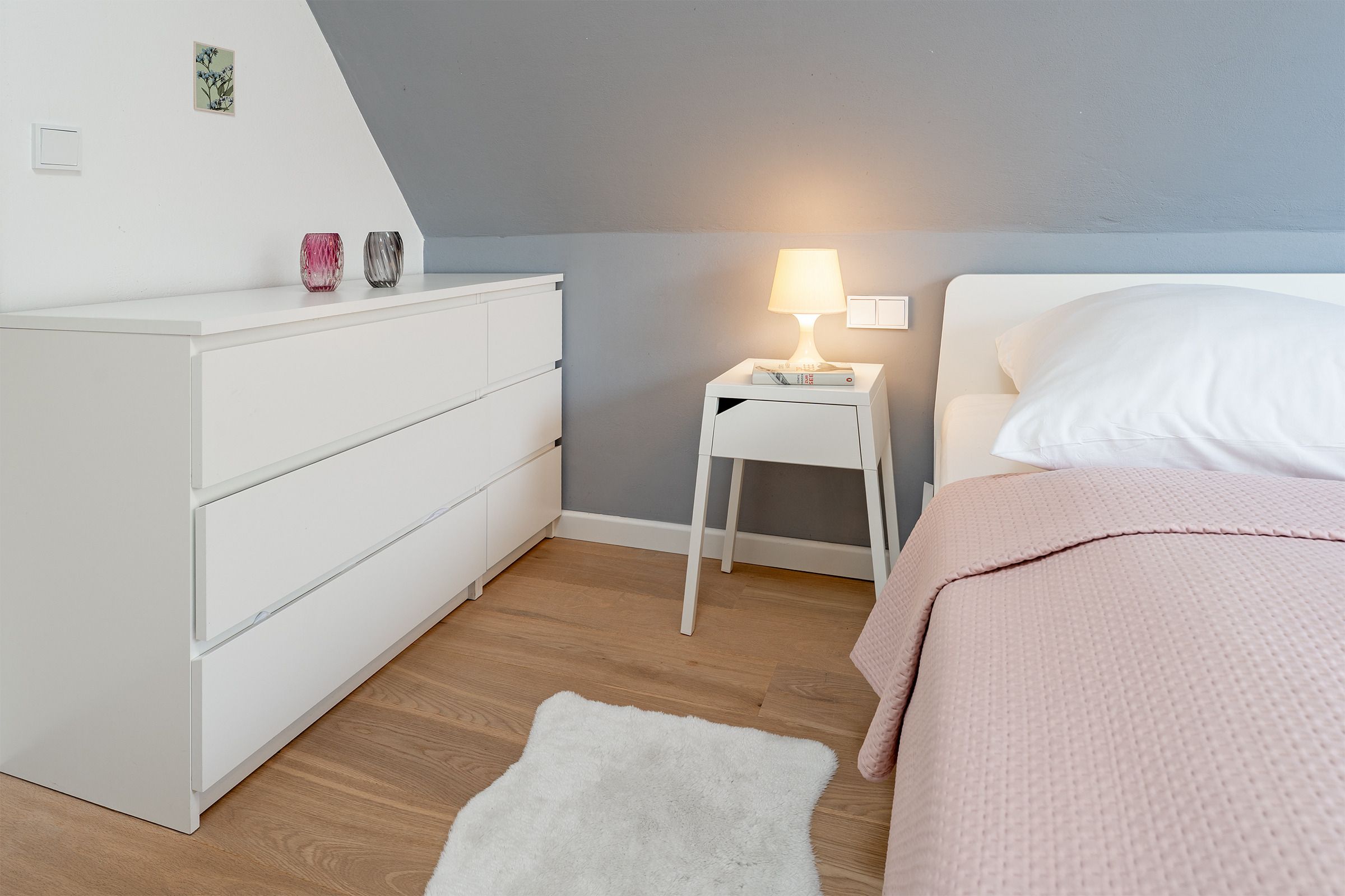 Schlafzimmer 1: 1 Doppelbett (2 x90x200 cm), Verdunklung mit Rollos in beiden Schlafzimmern