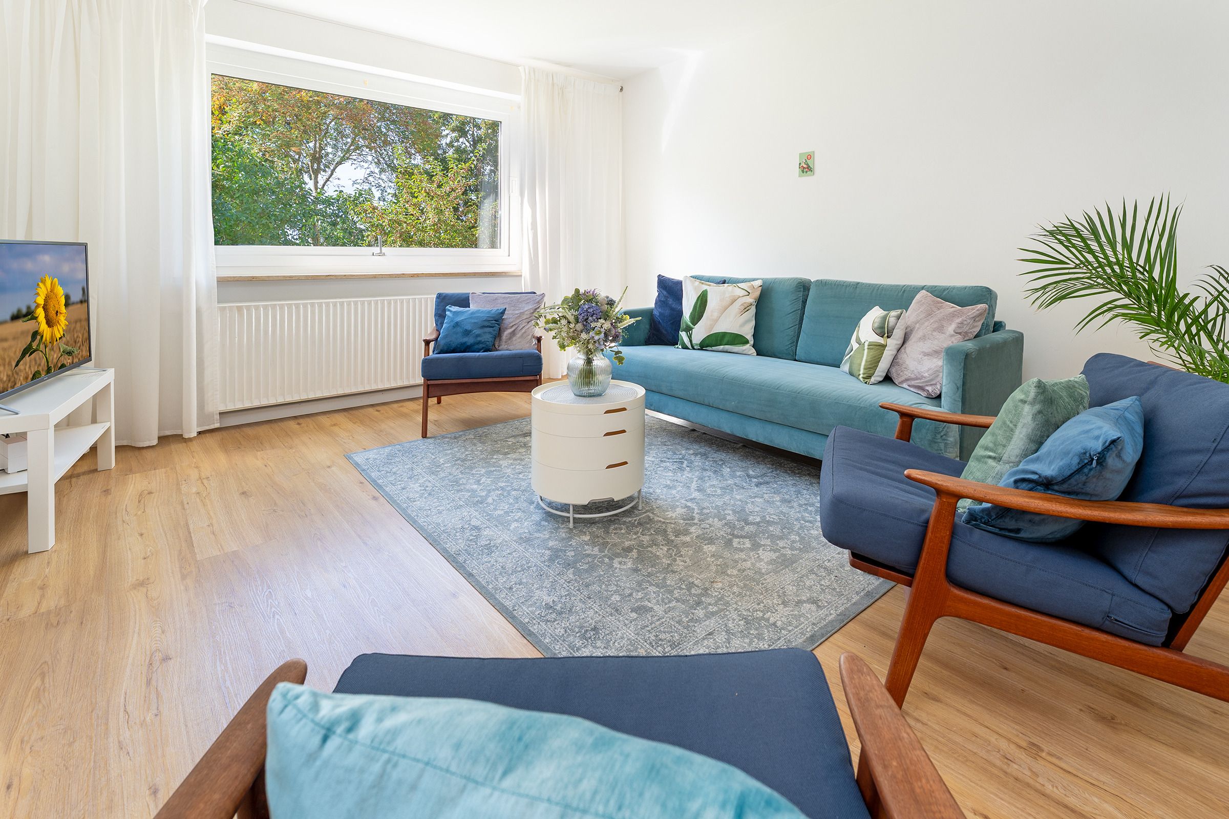Das Herzstück des Ferienhauses bildet der lichtdurchflutete, offen gestaltete Wohnbereich im Erdgeschoss mit einem bequemem Sofa, Sessel und Fernsehecke, einem angrenzendem Esszimmer mit Blick in den Garten und einer offenen, hervorragend ausgestatteten Küche mit Highlights wie z. B. Waffeleisen, Crêpesplatte und Raclettegrill.