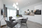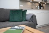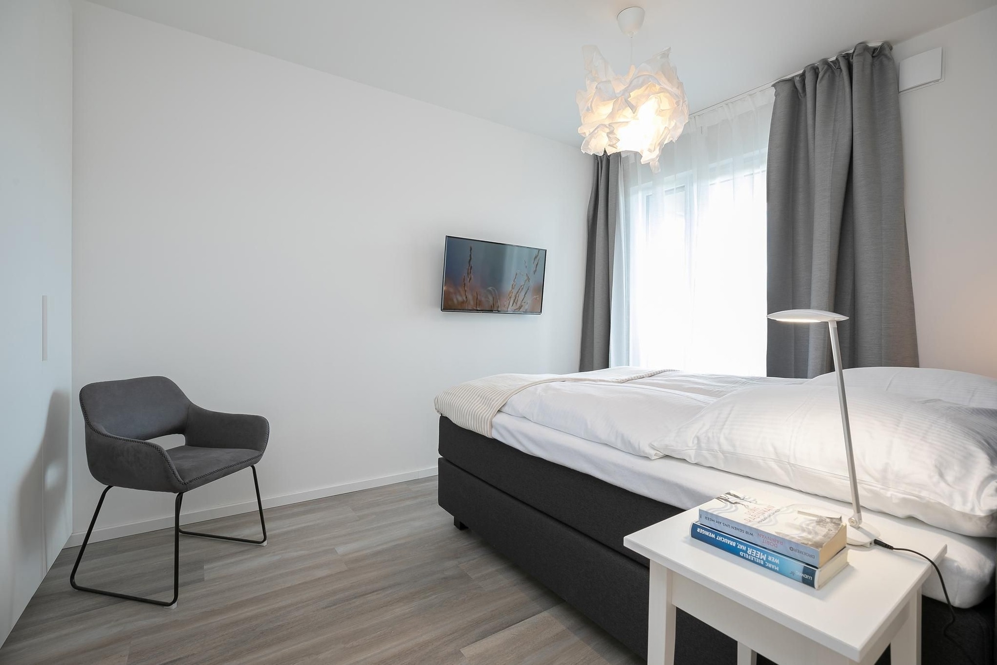 Treten Sie ein und genießen Sie Ihre wohlverdienten Urlaubstage in vollen Zügen. Der großzügige Wohnraum mit offener, voll ausgestatteter Küche bietet reichlich Platz für genussreiche Abendessen in Folge gemeinsamer Kochabende. Auf der gemütlichen Couch mit Schlaffunktion (160x200 cm) können Sie die Füße hochlegen und den Tag Revue passieren lassen, oder Sie genießen die frische Ostseeluft mit einem Glas Wein auf der Terrasse. Nach einem ereignisreichen Tag in Dahme finden Sie Erholung im separaten Schlafzimmer mit luxuriösem Boxspring-Doppelbett (160x200 cm, durchgehender Topper) und zweitem Flat-TV. Auch ein geräumiger Kleiderschrank darf in diesem Luxusappartement selbstverständlich nicht fehlen. Zu guter Letzt verfügen Sie über ein modernes Badezimmer mit Handtuchheizung und bodentiefer Dusche.