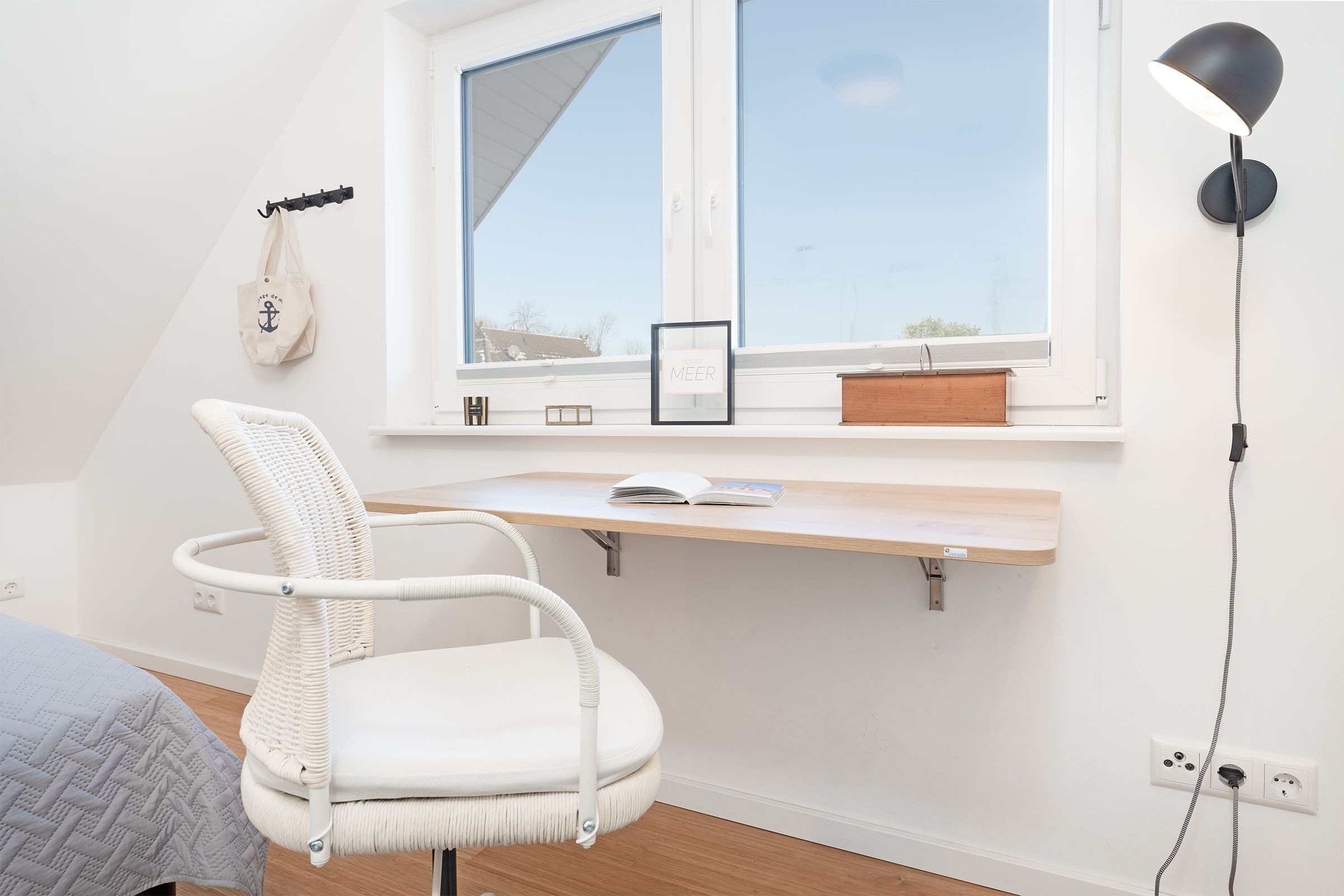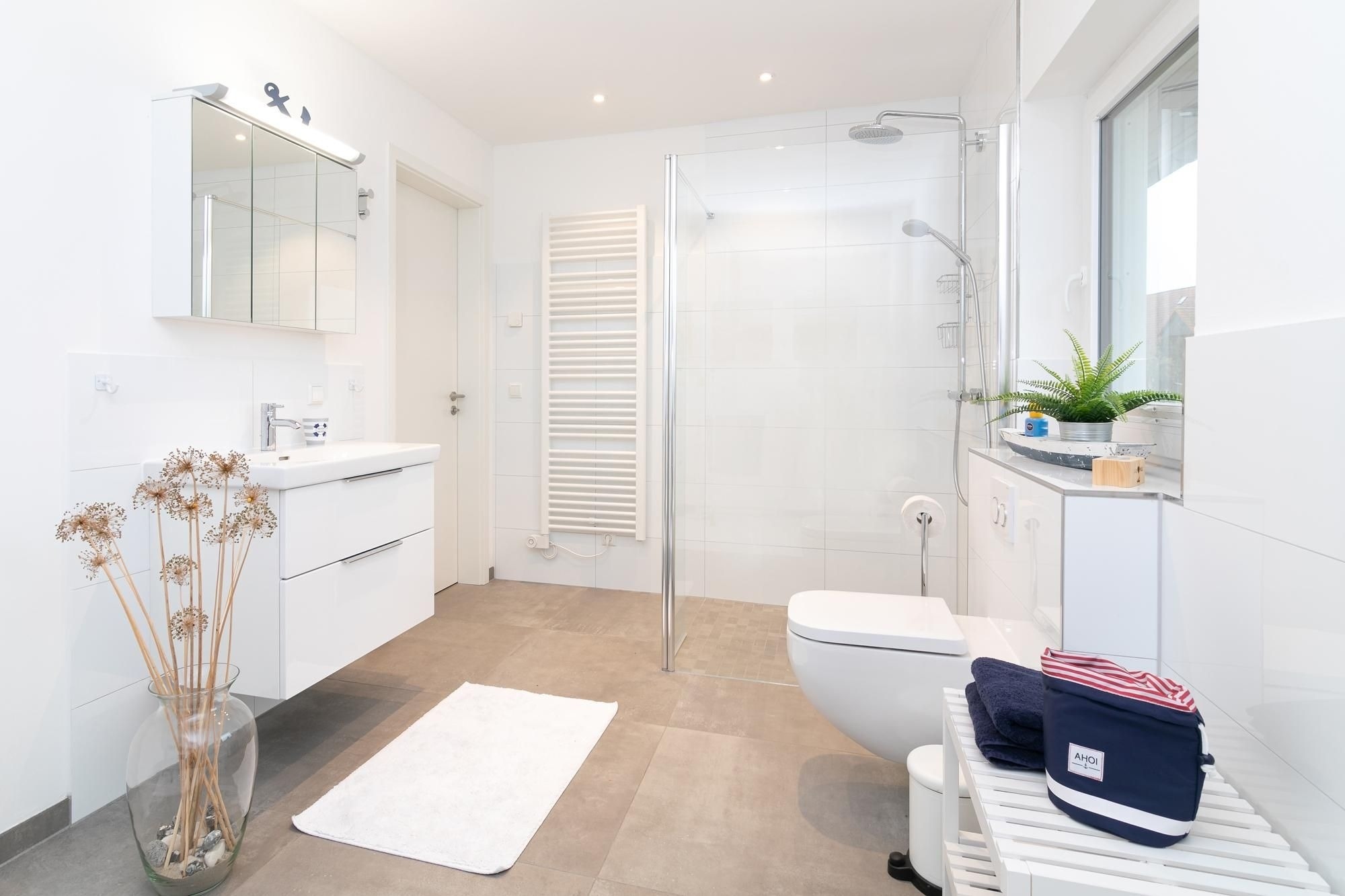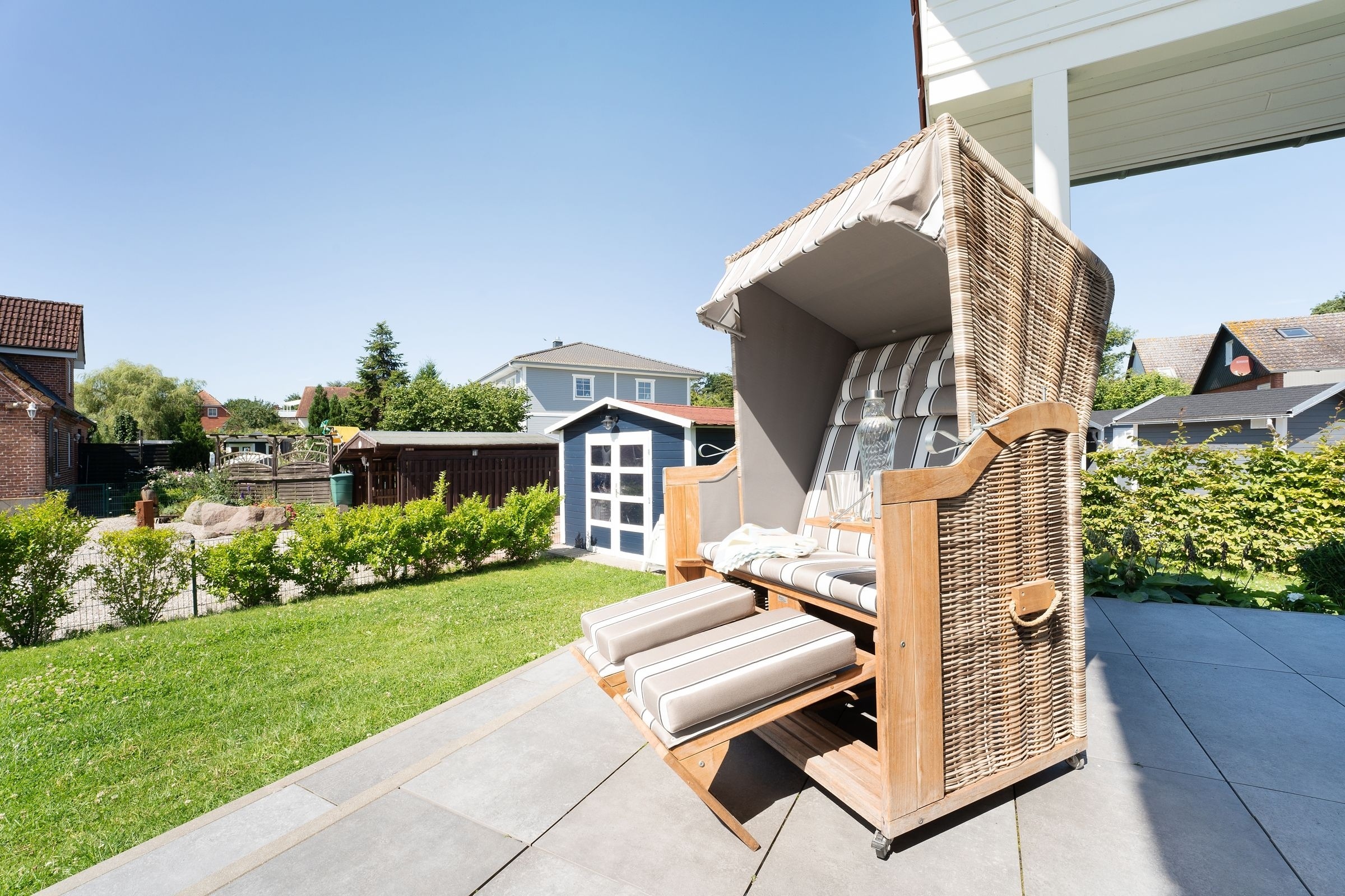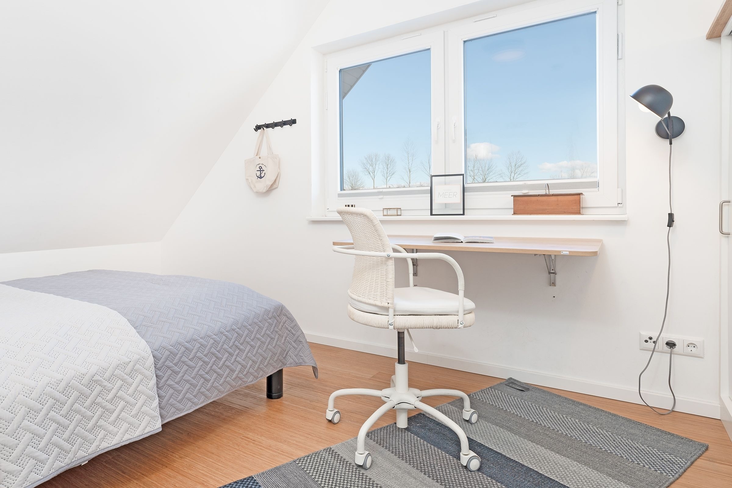 Vom geräumigen Flur gelangen Sie in die offen gestaltete Wohnküche, mit gut ausgestatteter Küchenzeile. Ein lichtdurchfluteter Galeriebereich sorgt für luftige Großzügigkeit. Ein wohliger Ofen, ein großer Esstisch, eine gemütliche Couch und liebevoll platzierte Dekoration bilden das Interieur. Vom Wohnzimmer haben Sie Zutritt zum eigenem Garten mit Terrasse und Strandkorb. Lassen Sie hier am Abend entspannt schöne Urlaubstage ausklingen oder genießen Sie schon den ersten Kaffee am Morgen mit einer frischen Ostseebrise in der Nase. Ein großes Wohlfühlbad mit bodentiefer Walk-In Dusche, Fenster, Handtuchheizung, finnischer Sauna für 3-4 Personen und im Außenbereich während der frostfreien Zeit, eine Dusche sowie ein Gäste-WC perfektionieren dieses schöne Ferienhaus. Im 1. Obergeschoss erwarten Sie zwei Schlafzimmer - eines mit Boxspring-Doppelbett (2x 80x200 cm) und eines mit 2 Einzelbetten (je 90x200 cm). Über ein Treppe gelangen Sie in das stilvolle Dachgeschoss. Hier befinden sich ein Schlafzimmer mit einem Doppelbett (2x 90x200 cm) und einem Homeoffice-Platz für mobiles Arbeiten sowie eine gemütliche Lounge-Ecke im offenen Galeriebereich.