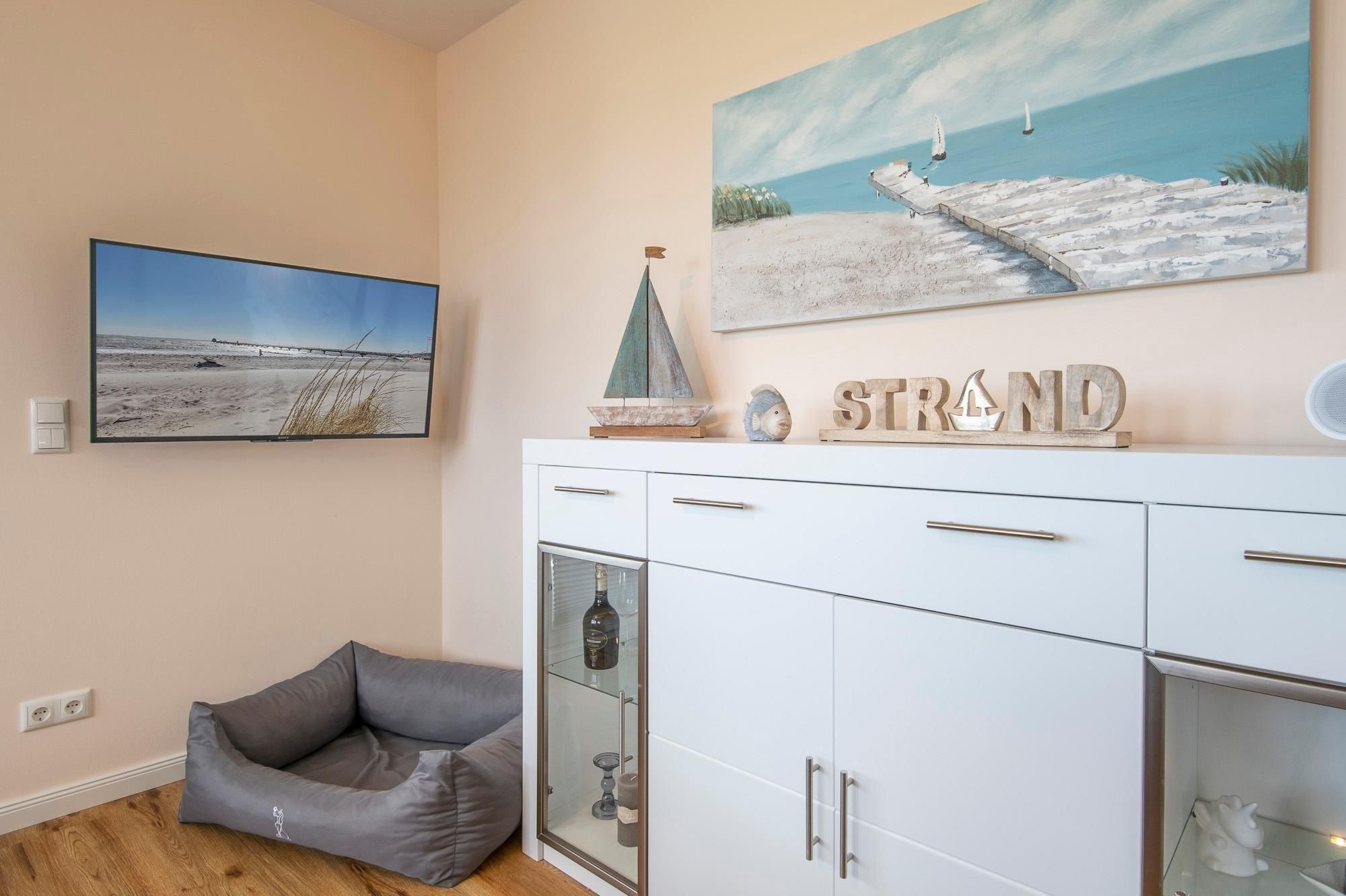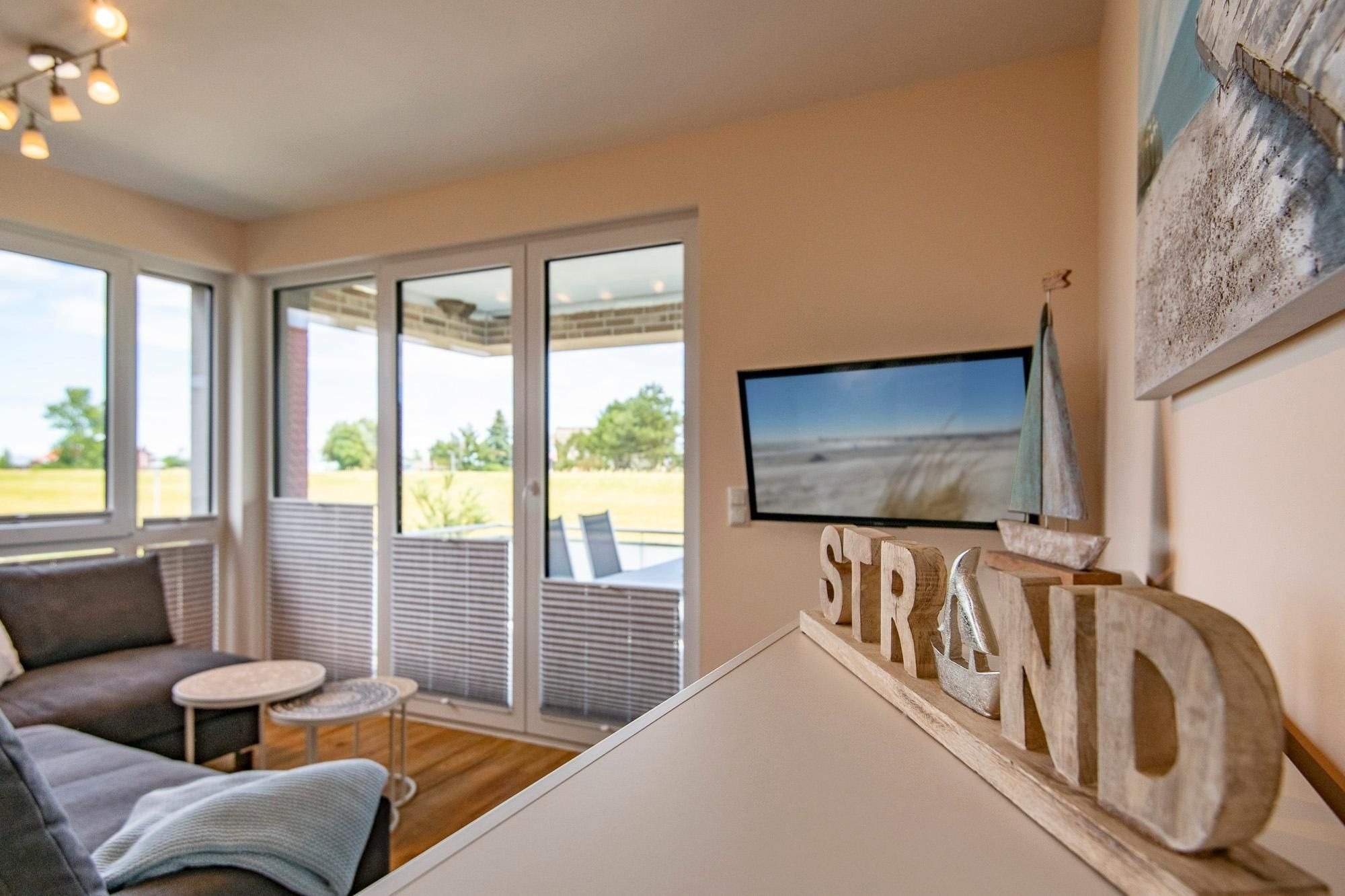 Auf einer Wohnfläche von ca. 54 m² begrüßt Sie diese stilsichere und moderne 2-Zimmer-Ferienwohnung mit separatem Schlafzimmer, Balkon und Meerblick. Der Wohn-/Essbereich mit Sofaecke, Flatscreen-TV, integrierter gut ausgestatteter Küchenzeile und Essplatz für 4 Personen ist hell und offen gestaltet. Treten Sie vom Wohnzimmer aus auf Ihren möblierten Balkon und genießen den Blick auf die schimmernde Ostsee.