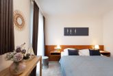 Schlafzimmer: 1 Doppelbett (2x 90x200 cm), Verdunkelung (Gardine), Platz für ein Kinderreisebett.