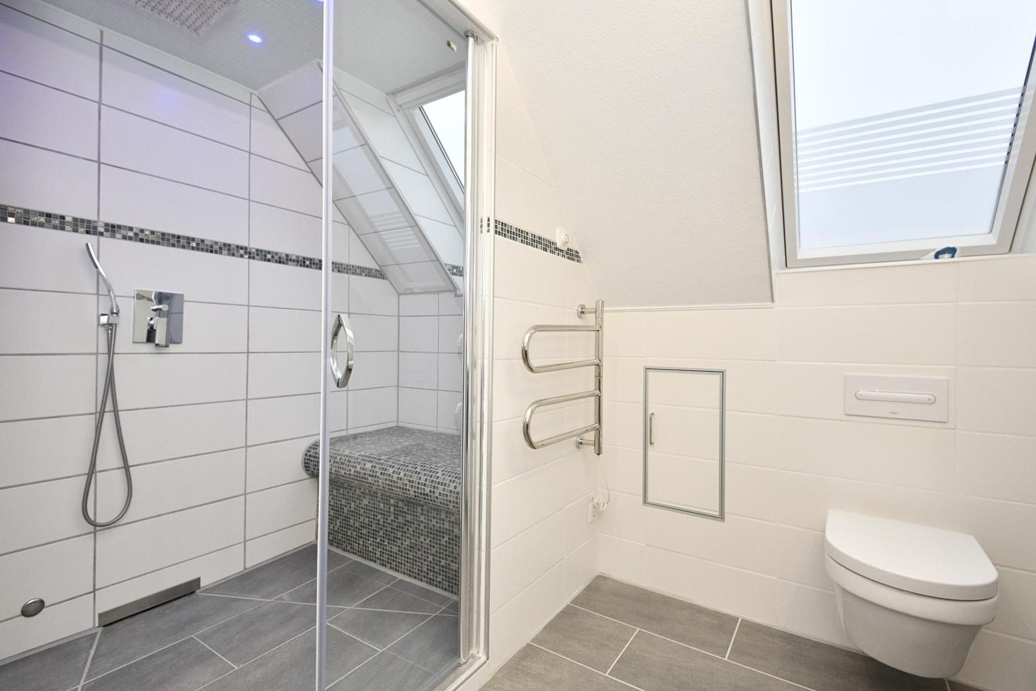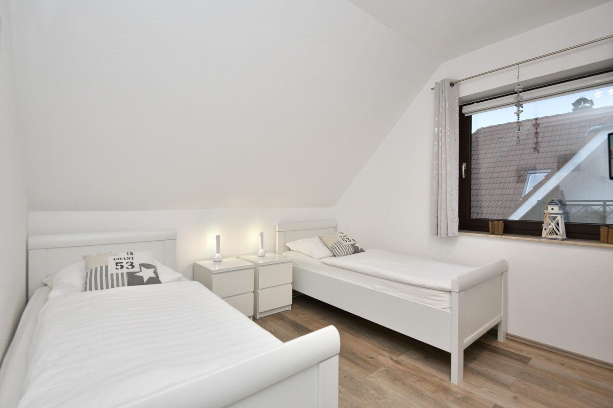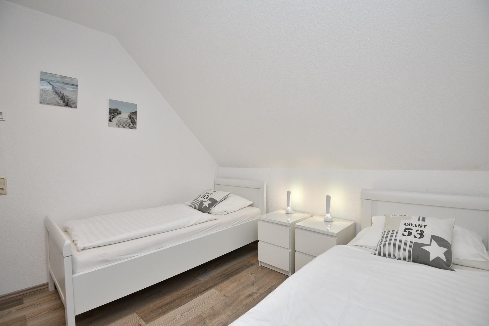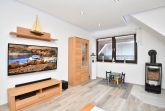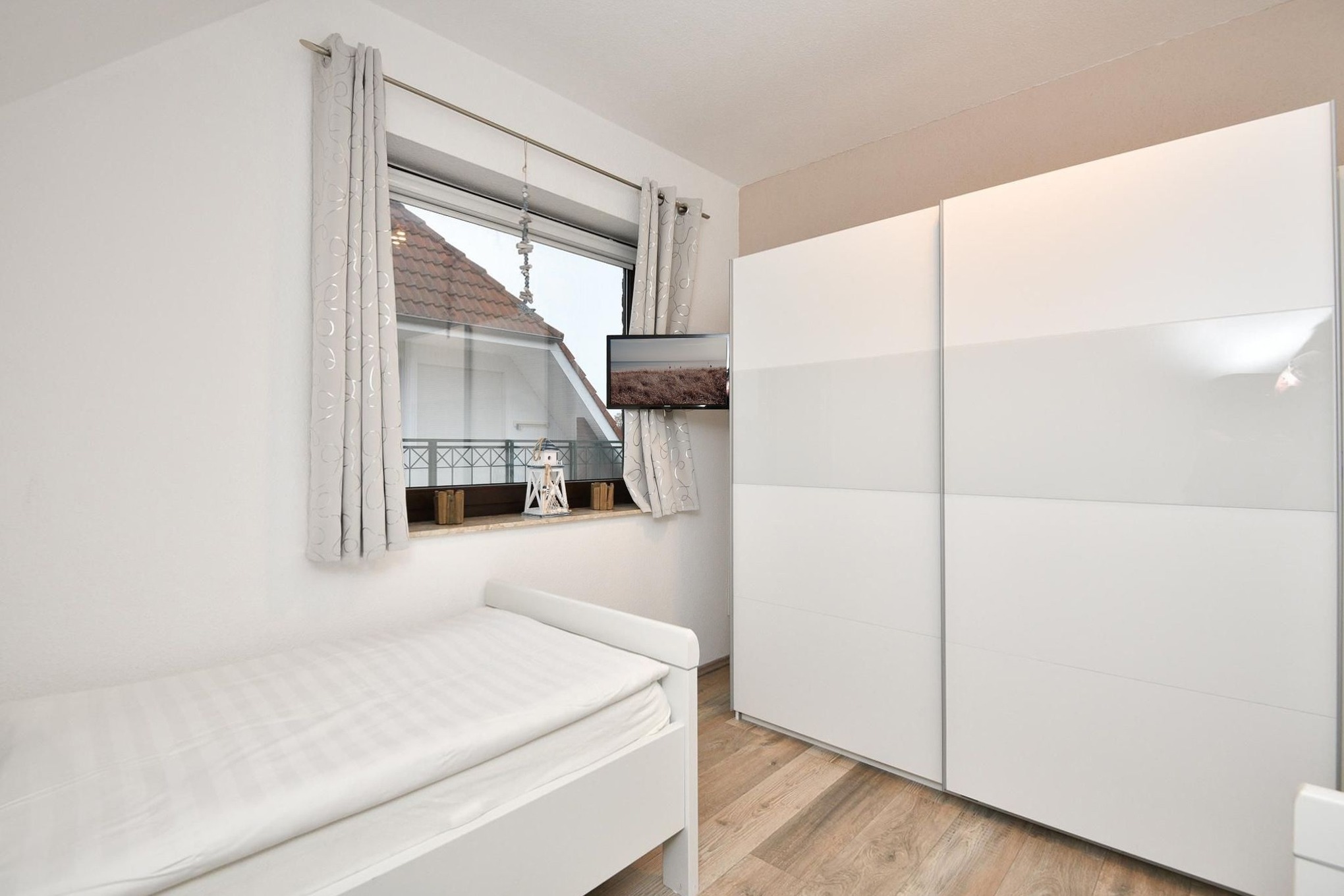 Herzliche willkommen – die liebevoll eingerichtete Ferienwohnung Jule erstreckt sich über das gesamte Dachgeschoss und begrüßt Sie mit einem großen Wohnzimmer mit Kaminofen, einem TV-Gerät, einer Stereoanlage sowie einer kleinen Kinderecke zum Spielen. Hier können Sie herrlich entspannen und den Alltag hinter sich lassen. Die separate Wohnküche verfügt über eine gute Ausstattung mit Spülmaschine und lässt garantiert die Herzen von Hobby-Köchen höherschlagen. In diesem Raum steht auch eine schicke Essecke für Sie bereit – und Sie haben Zutritt auf den großzügigen möblierten Süd-Balkon. Ein Sonnenschirm schützt Sie, falls es das Wetter mal zu gut meint. Erholsamen Schlaf finden Sie in den beiden Schlafräumen: Ein Zimmer ist mit einem Doppelbett (2x 90x200 cm) mit integrierter Sitzbank am Fußende und einem TV-Gerät ausgestattet. In dem anderen Zimmer stehen 2 Einzelbetten (je 90x200 cm) sowie ein weiteres TV-Gerät. Das moderne Bad mit Dachfenstern, großzügiger Dusche (ca. 120x220 cm und gefliester Sitzbank) und elektrischen Handtuchwärmer bietet viel Komfort sowie genügend Stauraum für Ihre Badutensilien. Eine weitere Annehmlichkeit ist das zusätzliche kleine Bad mit Badewanne.