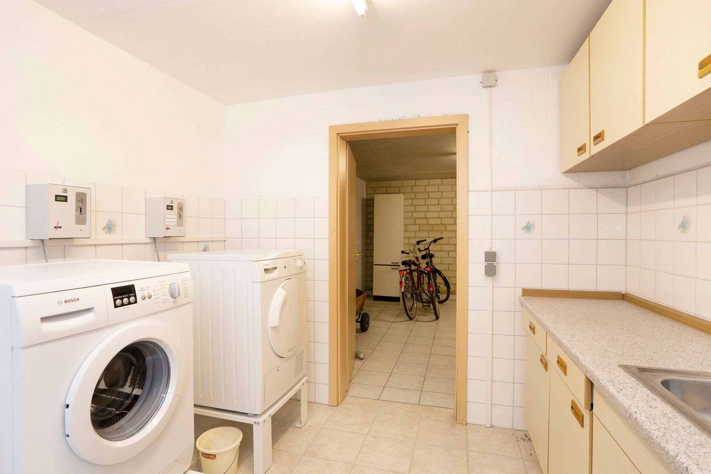 Auf dem Grundstück ist ein PKW-Außenstellplatz für Sie reserviert. Zur gemeinschaftlichen Nutzung befinden sich im Keller ein Fahrradraum sowie eine Waschmaschine mit Münz-Trockner.