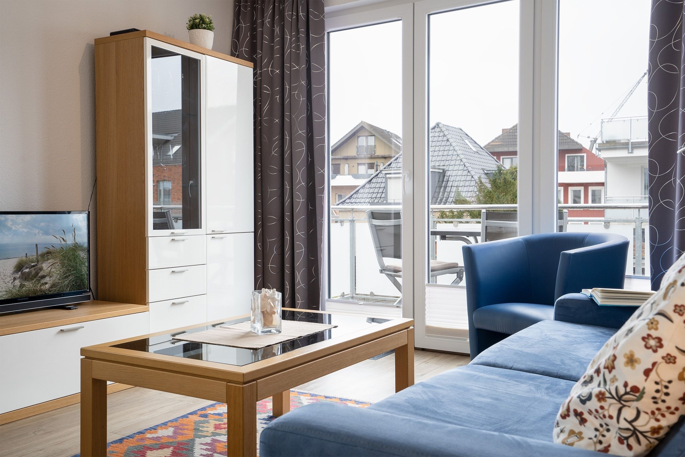 Stilvoll und gemütlich Urlaub machen: Das können Sie in dieser modernen Ferienwohnung in zentraler Lage im Obergeschoss des Stranddomizils. Mit einer Wohnfläche von ca. 48 m² und großem Balkon bietet sie ausreichend Platz für 2 - 4 Personen plus Kleinkind.