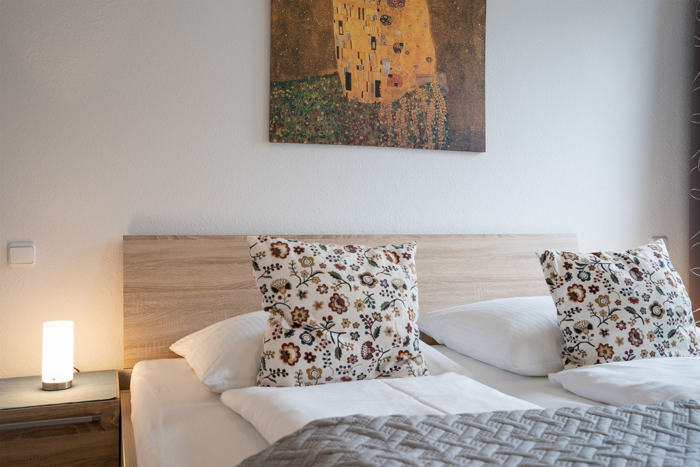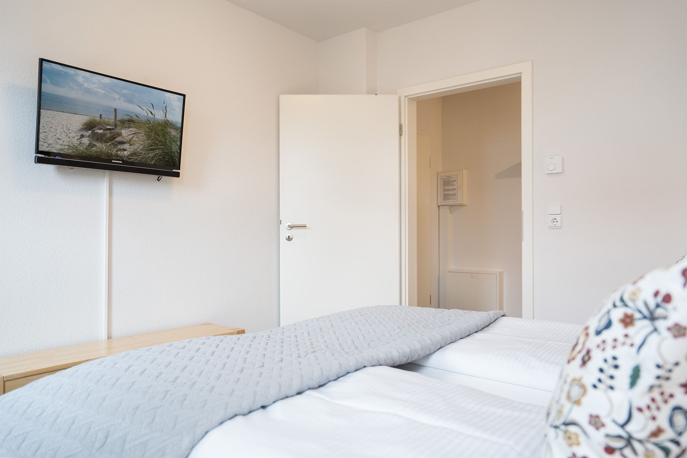 Schlafzimmer: 1 Doppelbett (2x 90x200 cm), TV, Kleiderschrank, Verdunkelung (Plissee, blickdichte Vorhänge)