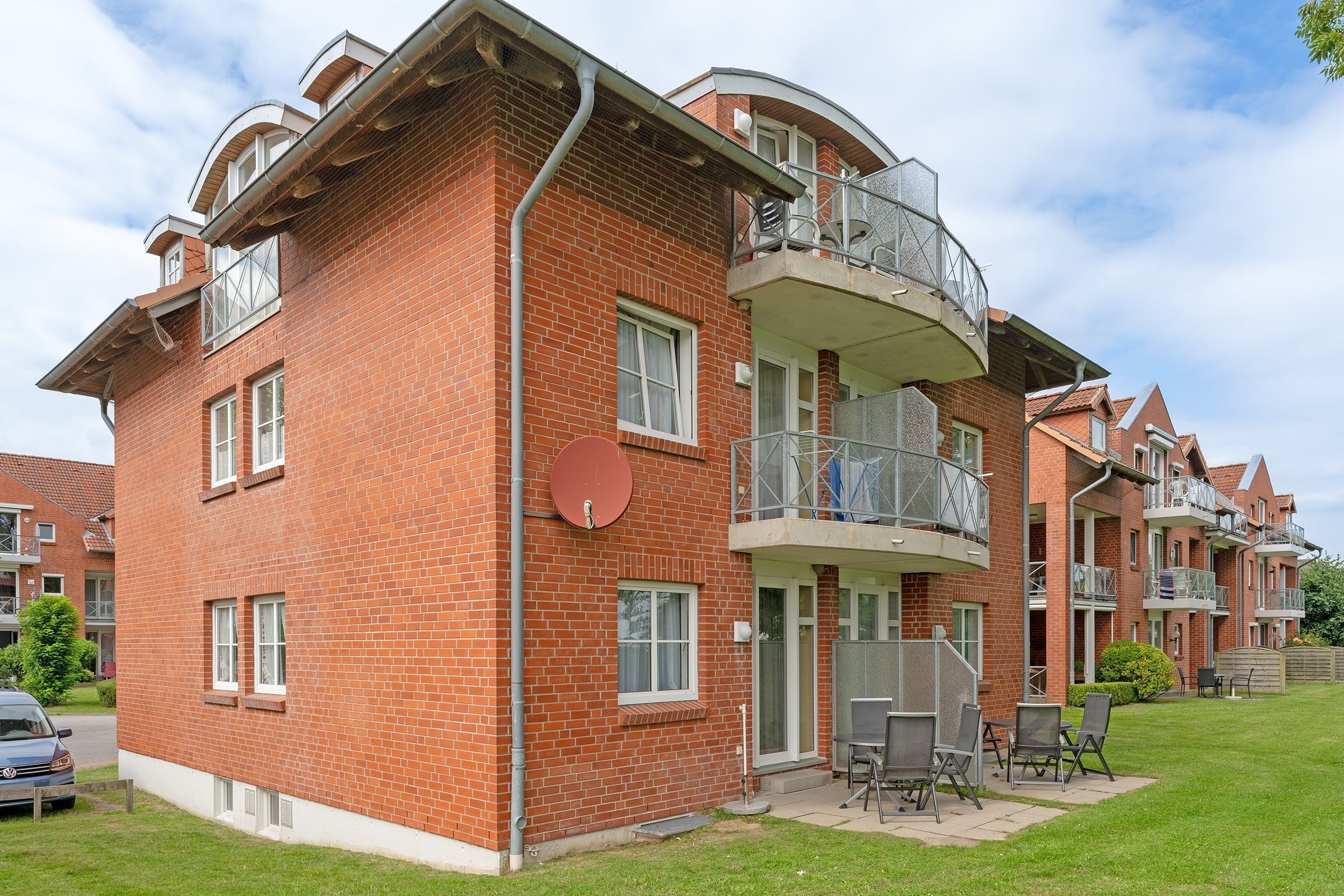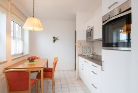 Träumen Sie davon, auf dem Balkon zu stehen und die Ostsee zu sehen? Dieser Traum kann in Erfüllung gehen – in der Ferienwohnung Ostsee-Krabbe. Diese befindet sich in der 1. Reihe zur Ostsee. Gleich hinter dem Deich, über den Sie vom Balkon aus gut rüber gucken können. Der helle Wohnbereich, der Ihnen den Zutritt auf den Balkon ermöglicht, ist geschmackvoll eingerichtet. Eine bequeme Polster-Garnitur lädt zum Entspannen vor dem TV-Gerät ein. Praktisch: Das Sofa hat eine Schlaffunktion und lässt sich in ein Doppelbett (ca. 160x200 cm) verwandeln. Die offene Küche mit Geschirrspüler ist gut ausgestattet und hat sämtliche Annehmlichkeiten, die ein Hobby-Koch für die Zubereitung seiner Lieblingsspeisen braucht. In der Ess-Ecke davor können Sie gemütlich zusammensitzen und schlemmen. Für die Nacht steht Ihnen noch ein separates Schlafzimmer mit einem Doppelbett (2x 90x200 cm) zur Verfügung. Träumen Sie hier von dem schönen Ostsee-Blick, den Sie sich am nächsten Morgen wieder erfüllen können. Das Duschbad ist hell gefliest.