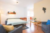 Wohnzimmer: 1 Schlafsofa (160x200 cm), Kleiderschrank, Verdunkelung Gardine