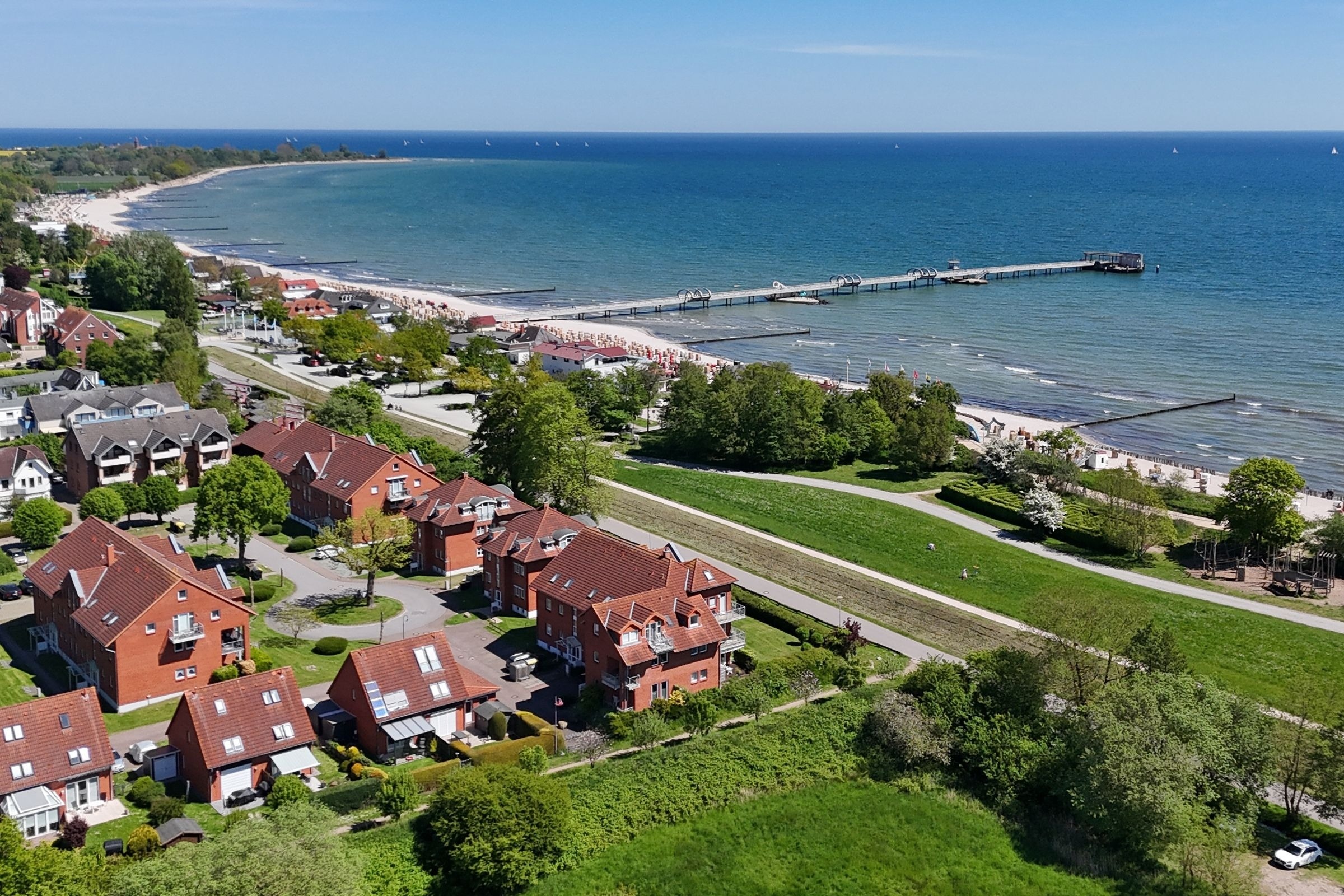 Urlaub in der 1. Reihe von Kellenhusen: Die freundliche 2-Zimmer-Ferienwohnung im Dachgeschoss (2. Stock) ist für bis zu 4 Personen ausgelegt und verfügt über einen Balkon mit saisonal eingeschränktem Teilmeerblick sowie einer Wohnfläche von ca. 48 m².