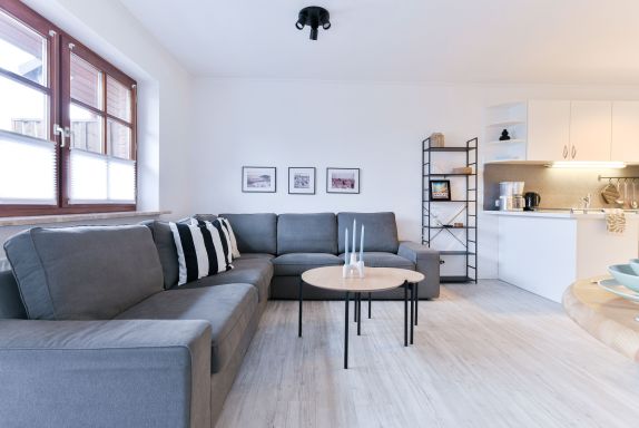 Hereinspaziert! Der Wohnbereich präsentiert sich mit einer großzügigen Sofalandschaft vor dem TV-Gerät und einer gemütlichen Essecke hell und freundlich. Packen Sie Ihre Sachen aus und stoßen Sie auf Ihren Urlaub an. Unzählige Sonnenstunden können Sie auf dem möblierten Südbalkon genießen, den Sie direkt vom Wohnbereich aus betreten können. Die gut ausgestattete Küche mit Geschirrspüler ist zum Wohnbereich hin offen gestaltet. Hier können Sie nach Herzenslust neue Rezepte ausprobieren. Zwei separate Schlafzimmer stehen Ihnen für die Nachtruhe zur Verfügung: Der eine Raum verfügt über ein Doppelbett (180x200 cm) und der andere Raum über zwei Einzelbetten (90x200 cm und 90x170 cm). Beide Zimmer sind mit einem Kleiderschrank ausgestattet und es kann mit einem Rollo verdunkelt werden. Das gepflegte Duschbad ist hell gefliest.