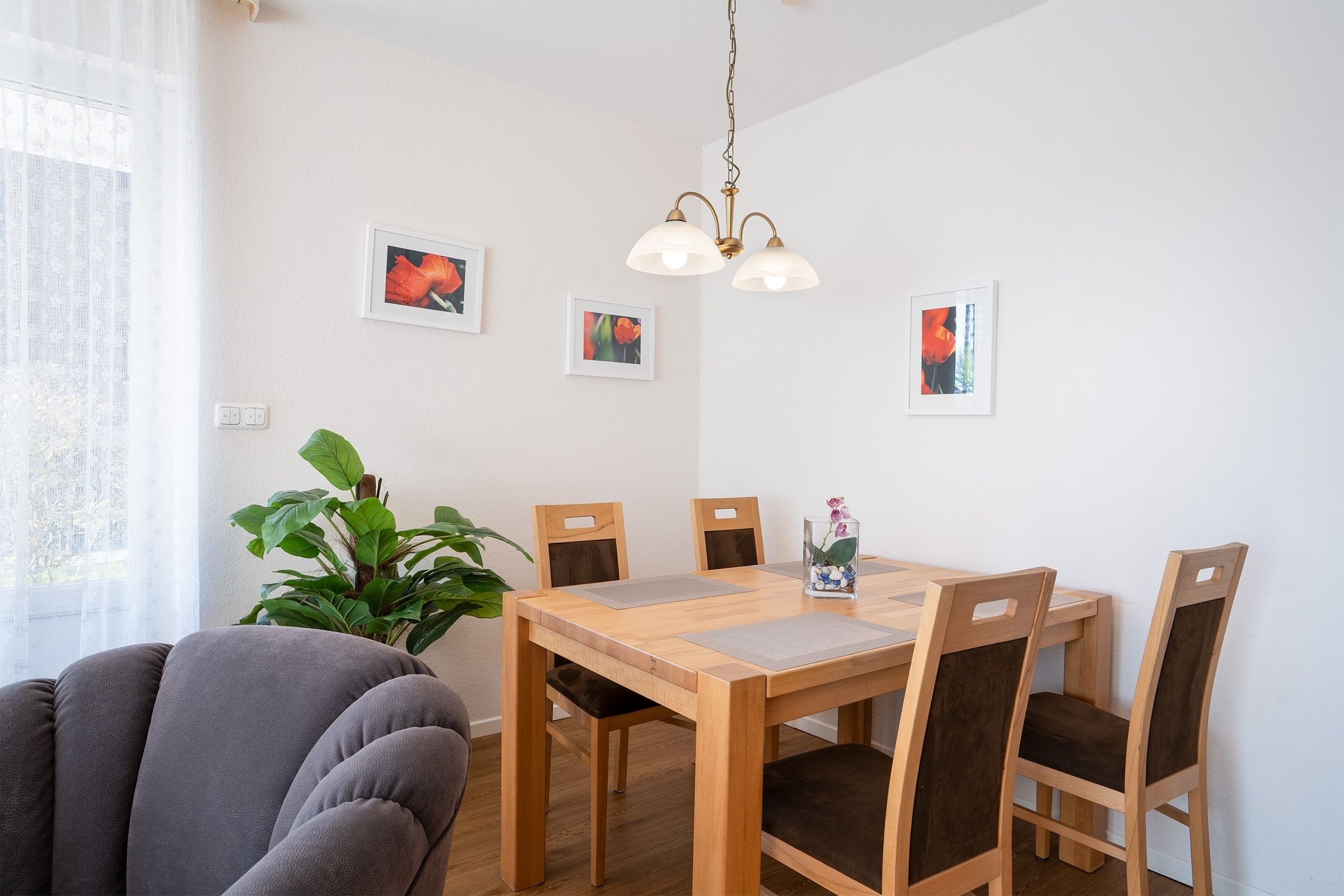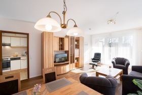 Stellen Sie sich vor, Sie stehen auf der Terrasse und können die Ostee-Luft schnuppern? Genau das ist hier möglich. Ihr schönes Feriendomizil befindet sich in der Ferien-Wohnanlage Strandhotel – eine Anlage mit direktem Zugang zum Strand. Kommen Sie herein und nehmen Sie Platz. Neben zwei Sesseln steht Ihnen im hellen Wohn-/Ess-Bereich auch ein gemütliches Sofa zur Verfügung. Vor der großen Terrassentür ist eine gemütliche Lese-Ecke eingerichtet. Verweilen Sie hier – oder bei gutem Wetter natürlich draußen. Die Rundum-Terrasse bietet viel Platz zum Entspannen. Vielleicht hören Sie sogar die Ostseewellen? Die separate Küche mit Geschirrspüler ist gut ausgestattet und bietet Ihnen beim Kochen viel Platz. Abends finden Sie Ihre wohlverdiente Ruhe im gemütlichen Doppelbett (2x 80x200 cm) im Schlafzimmer. Träumen Sie hier von Ihren Urlaubserlebnissen an der Ostsee. Das innenliegende Bad ist zweckmäßig ausgestattet. Die Fenster sind mit Außenjalousien versehen. Der WLAN-Anschluss ist inklusive.