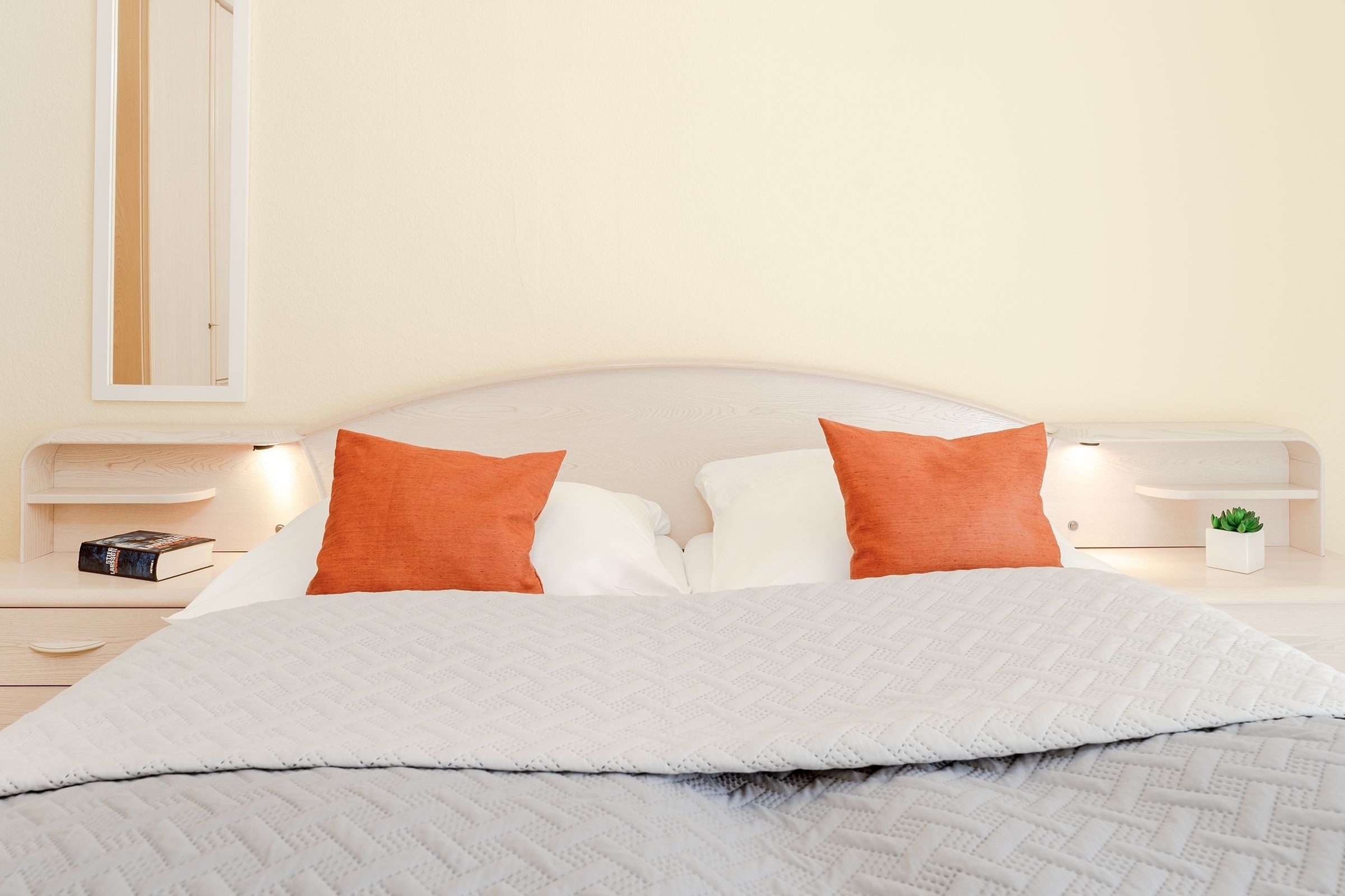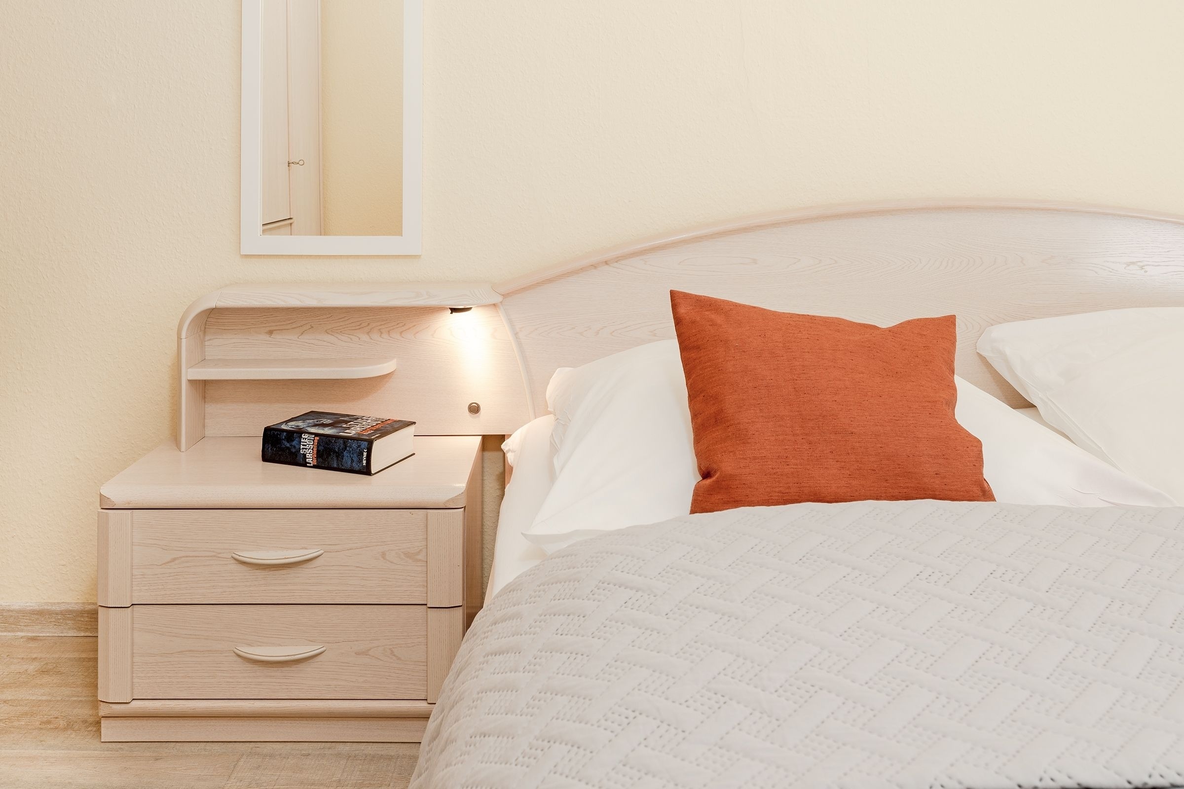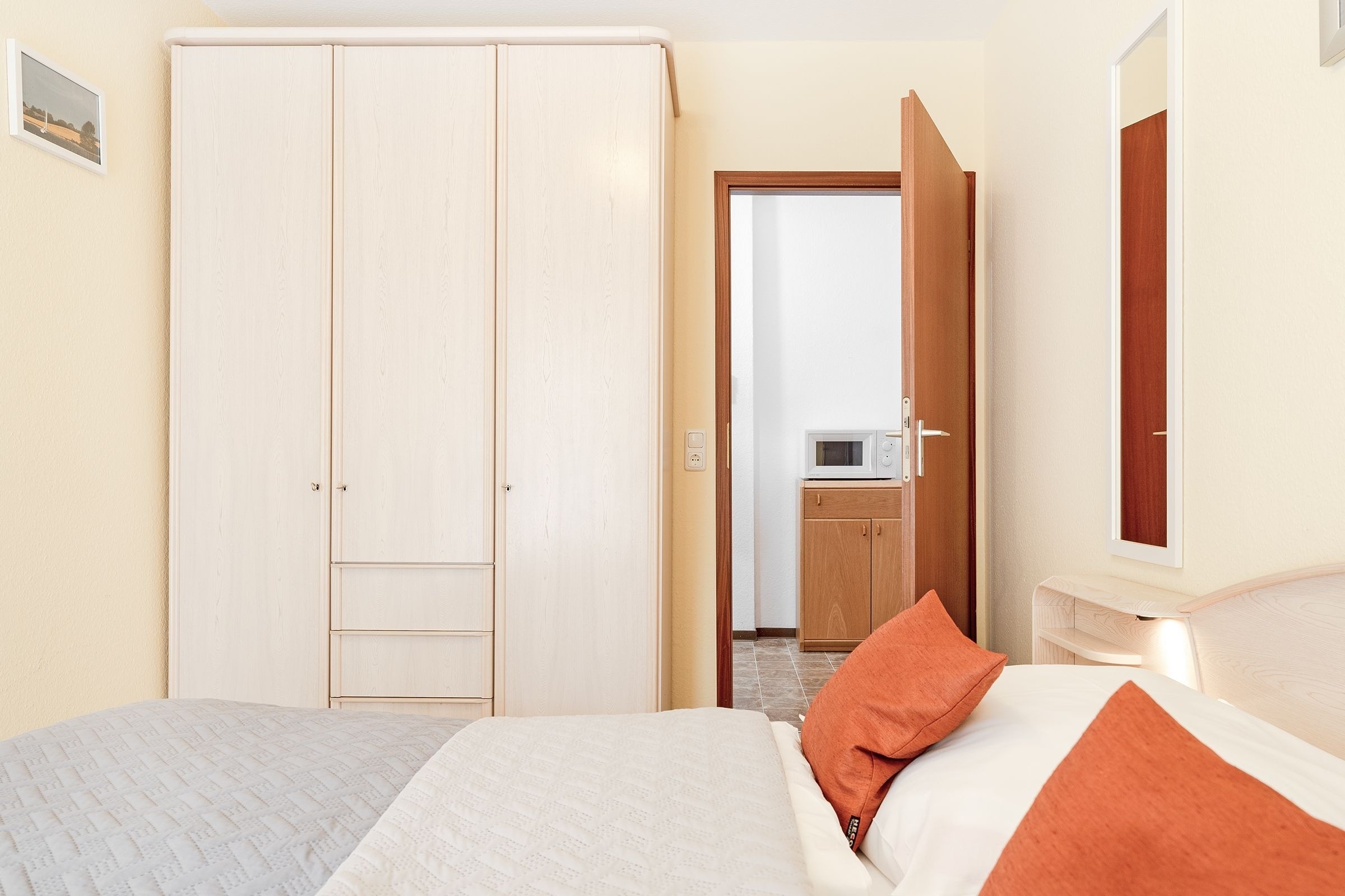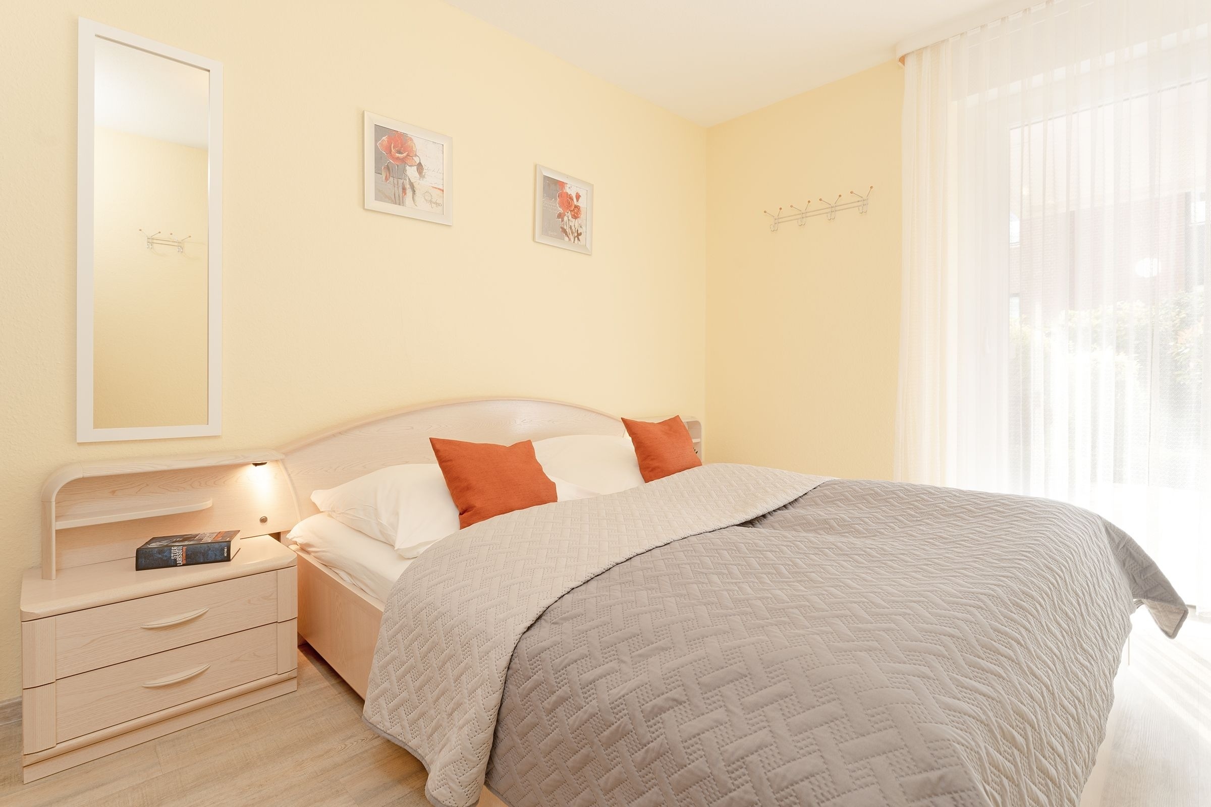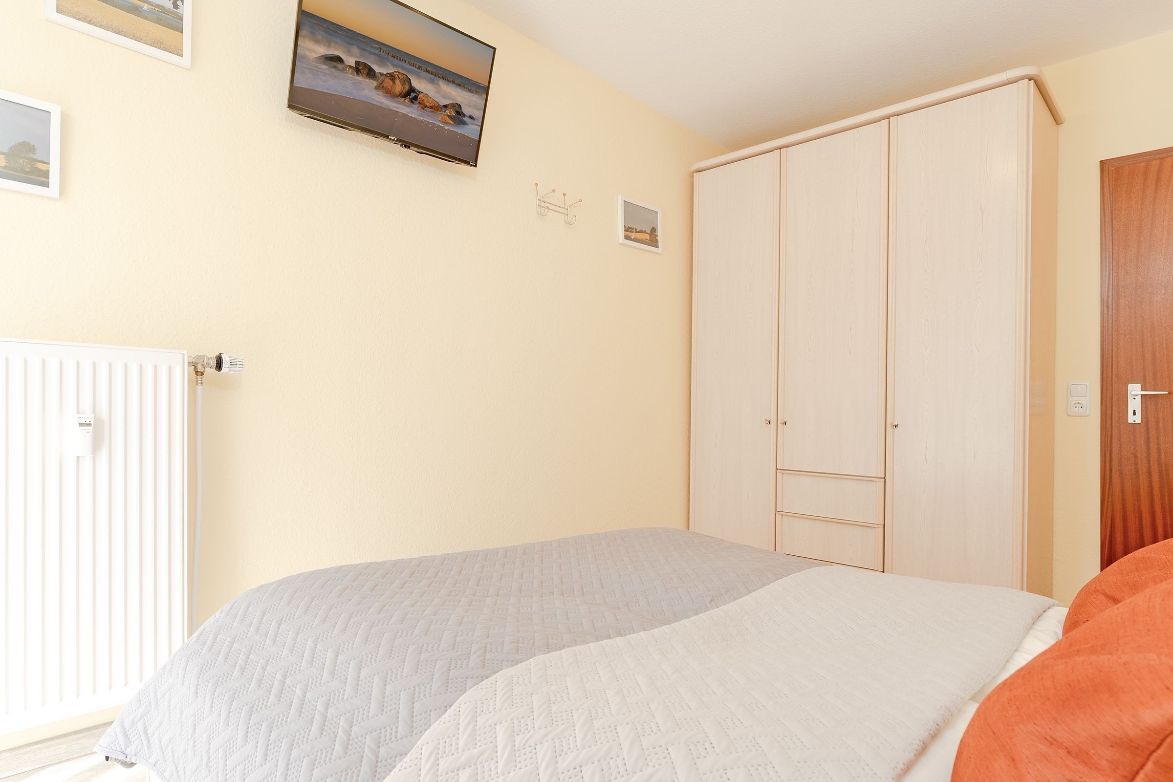Schlafzimmer: 1 Doppelbett (2x 80x200 cm), TV, Kleiderschrank, Verdunkelung: elektr. Außenjalousien