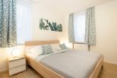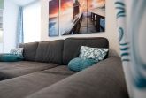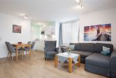 Der modern eingerichtete Wohnbereich wurde mit einem komfortablen Ecksofa, einem Esstisch sowie einem Flachbildfernseher ausgestattet. Dieser Bereich ist hell und freundlich gestaltet und lädt dazu ein, eine schöne Urlaubszeit mit Ihrer Familie oder Ihren Freunden zu verbringen. In einer Nische im Wohnbereich befindet sich die offene, bestens ausgestattete Küche. Ihnen stehen z. B. eine Kühl-/Gefrierkombination, ein 4-Platten-Cerankochfeld sowie ein Geschirrspüler zur Verfügung. Als Schlafmöglichkeiten dienen das Doppelbett (2x 90x190 cm) im separaten Schlafzimmer und das ausziehbare Ecksofa (ca. 140x200 cm) im Wohnbereich. In beiden Räumen sind Gardinen als Verdunkelungsmöglichkeit vorhanden. Ihre Urlaubsgarderobe können Sie bequem im großen Kleiderschrank im Schlafzimmer verstauen. Im innenliegenden, hell gefliesten Badezimmer mit Dusche ist ebenfalls ausreichend Stauraum für Ihre Badutensilien vorhanden. Auf dem möblierten Balkon können Sie viele schöne Stunden verbringen und den Blick auf das Meer genießen. Der WLAN-Anschluss ist für Sie selbstverständlich kostenfrei.