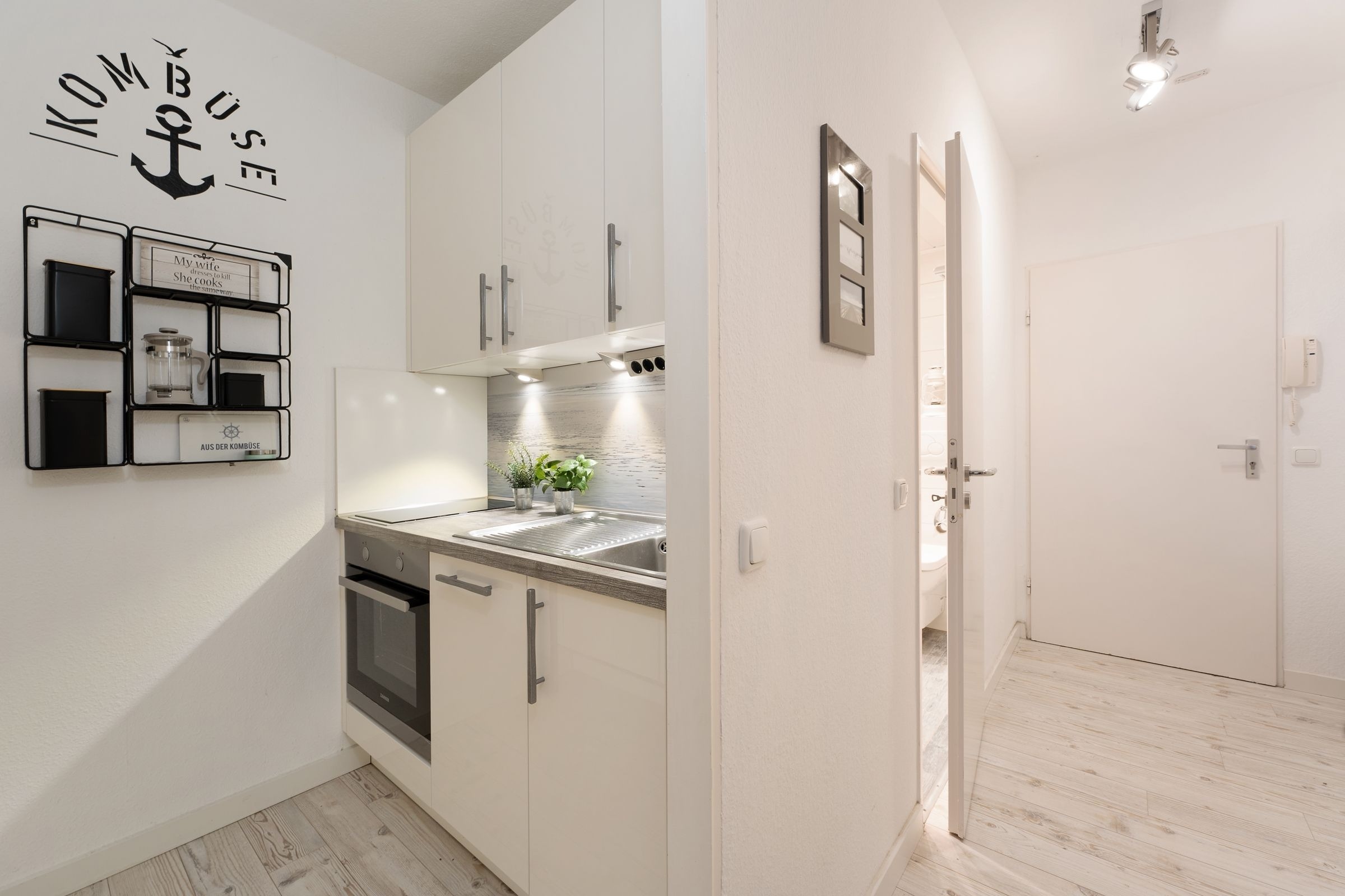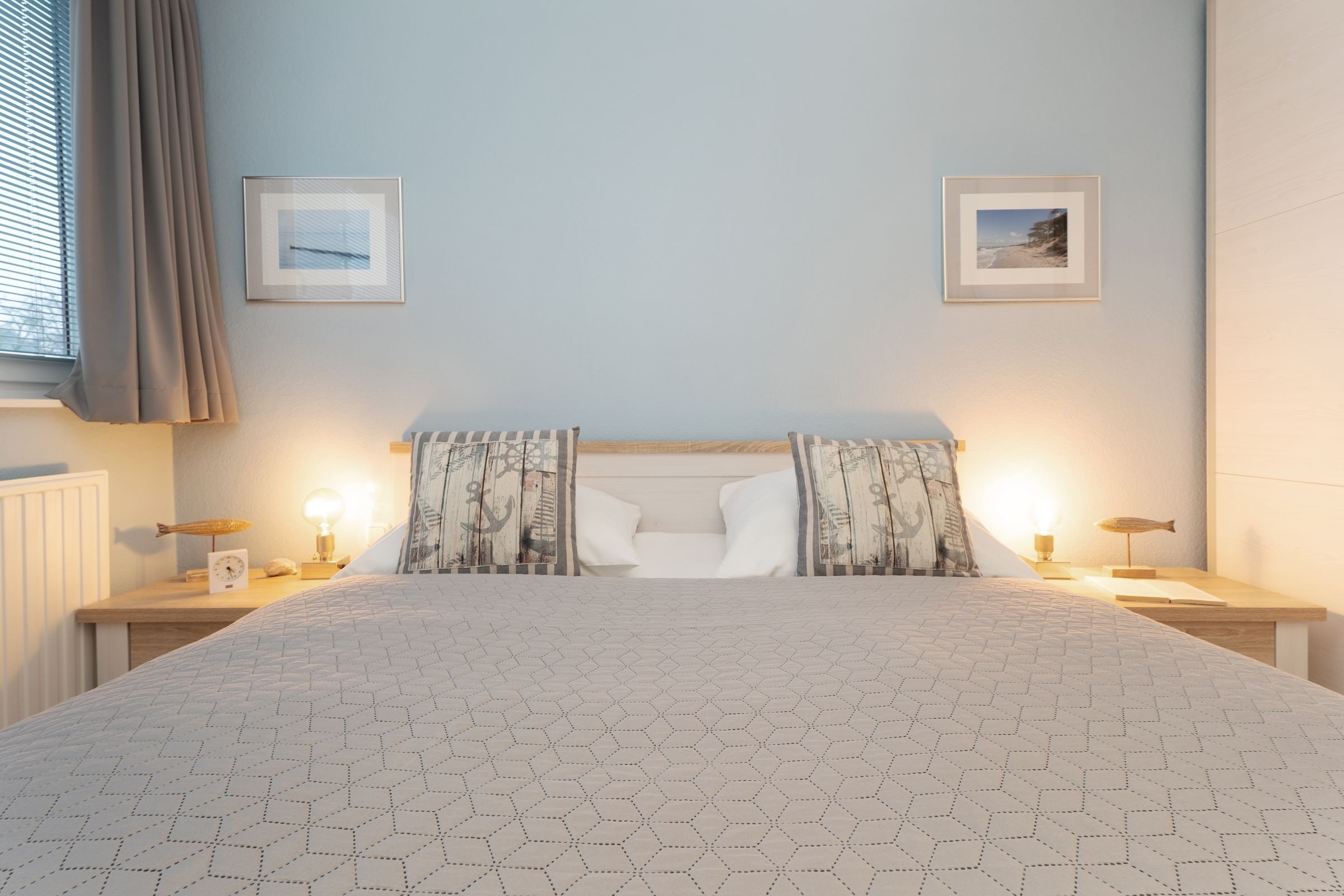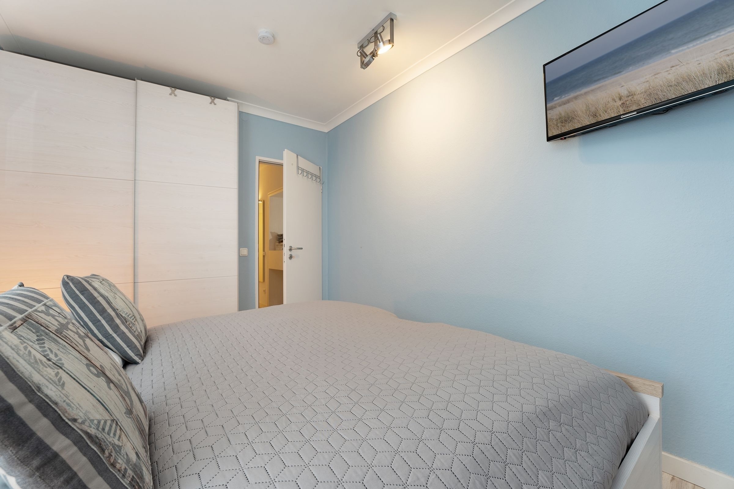 In der maritim eingerichteten Ferienwohnung werden Sie sich sofort wohlfühlen – Ihr Urlaub kann direkt beginnen! Im Wohnzimmer warten eine gemütliche Sitzecke mit TV sowie eine Essecke auf Sie. Von hier aus können Sie auf den möblierten Balkon treten und die frische Meeresbrise der nur 100m entfernten Ostsee genießen. Im Wohnzimmer befindet sich ein praktisches Schrankbett (2x 90x200 cm), das für die Nacht ausgeklappt wird. In einem separaten Schlafzimmer steht ein Doppelbett (2x 90x200 cm). Darin lässt es sich wunderbar von den Erlebnissen des Tages träumen. Die geschlossen Küche mit Induktionsherd ist gut ausgestattet und steht bereit für jegliche Koch-Ideen. Zaubern Sie hier Ihre Menüs und genießen Sie Ihre Zeit an der Ostsee.