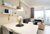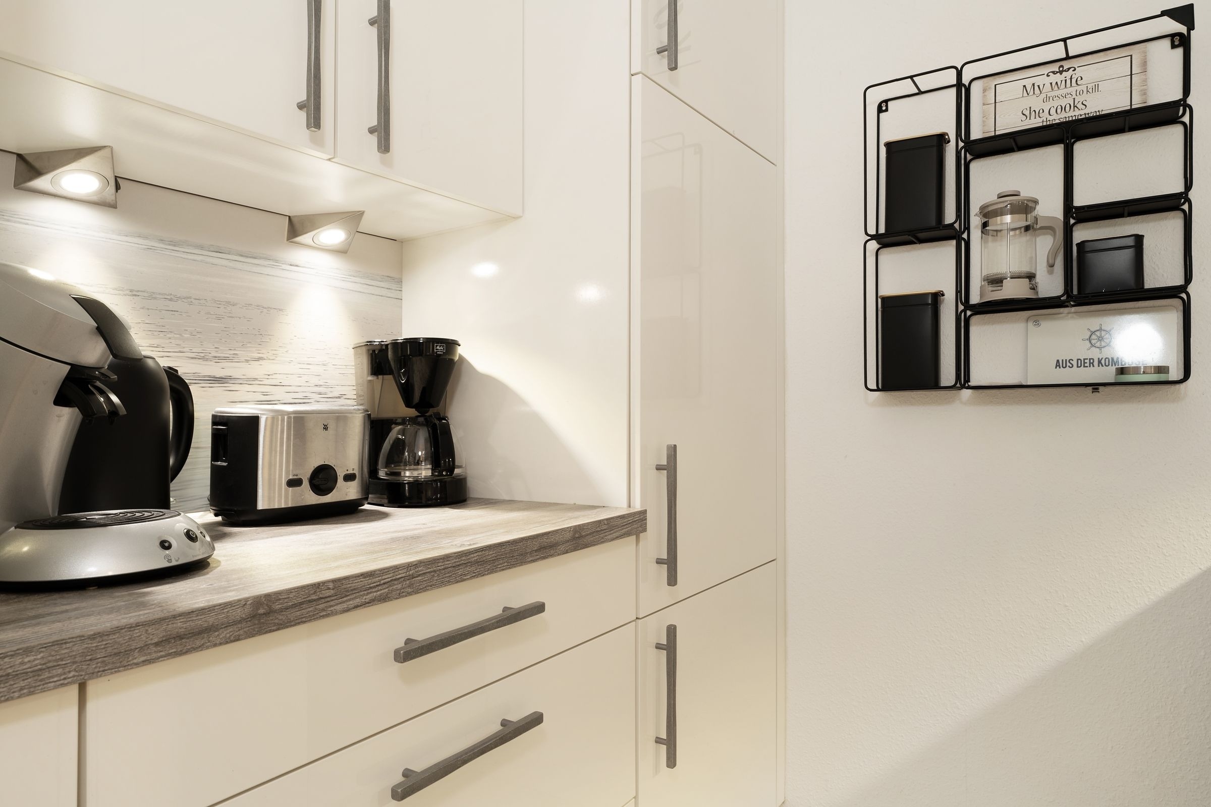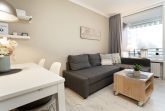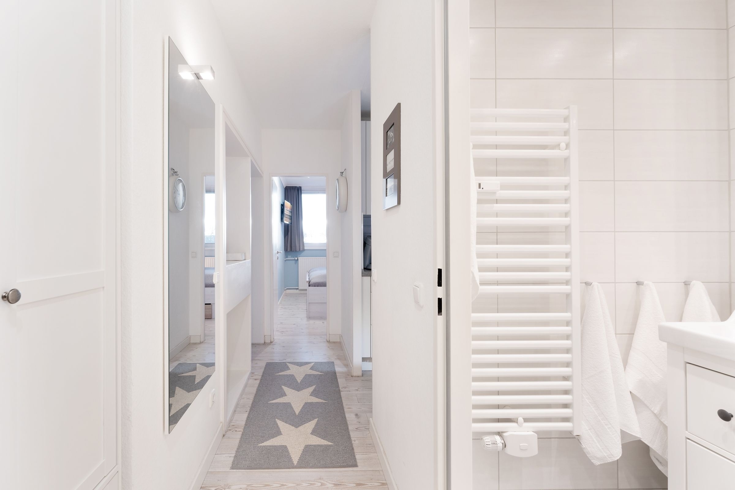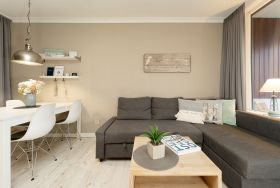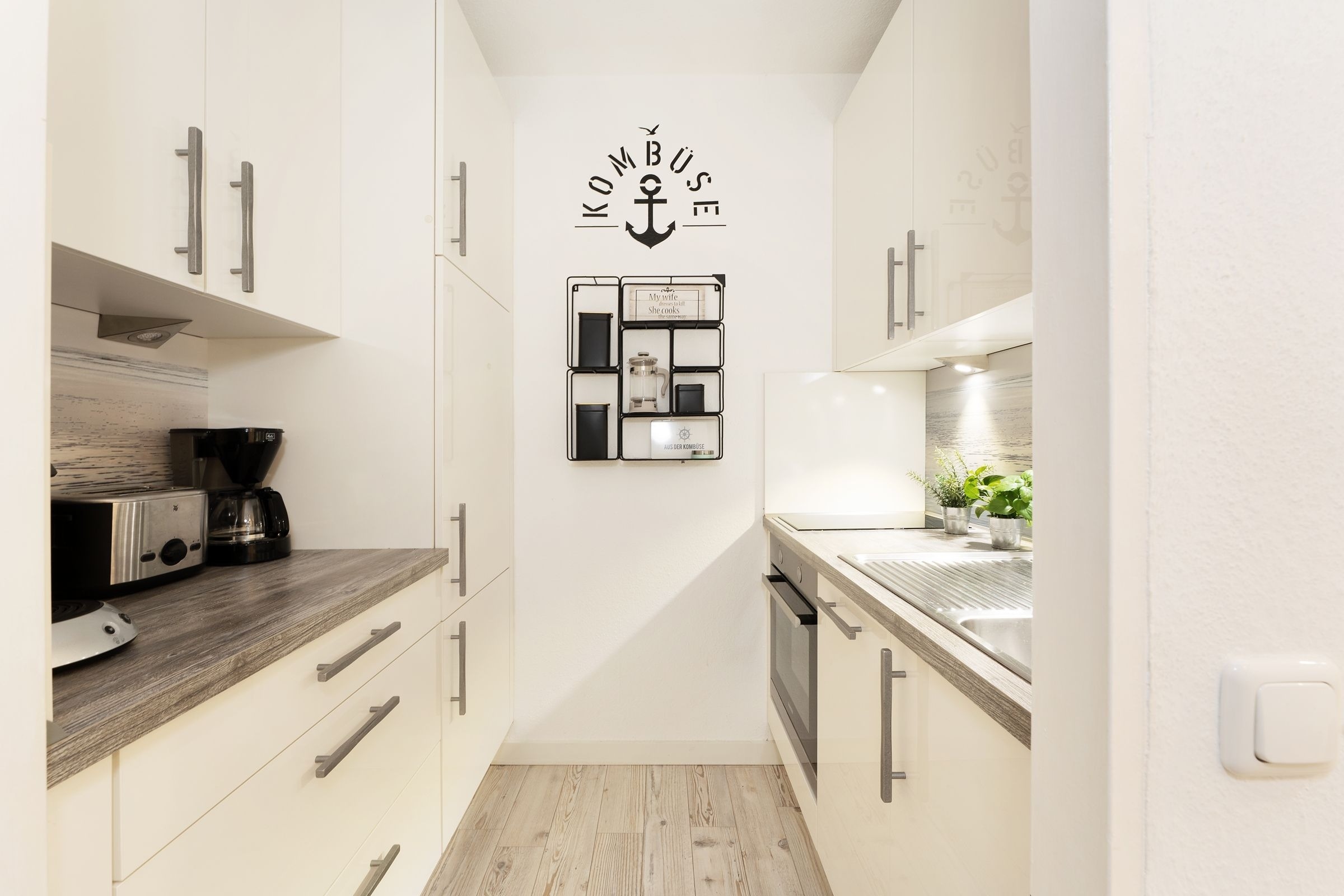 In der maritim eingerichteten Ferienwohnung werden Sie sich sofort wohlfühlen – Ihr Urlaub kann direkt beginnen! Im Wohnzimmer warten eine gemütliche Sitzecke mit TV sowie eine Essecke auf Sie. Von hier aus können Sie auf den möblierten Balkon treten und die frische Meeresbrise der nur 100m entfernten Ostsee genießen. Im Wohnzimmer befindet sich ein praktisches Schrankbett (2x 90x200 cm), das für die Nacht ausgeklappt wird. In einem separaten Schlafzimmer steht ein Doppelbett (2x 90x200 cm). Darin lässt es sich wunderbar von den Erlebnissen des Tages träumen. Die geschlossen Küche mit Induktionsherd ist gut ausgestattet und steht bereit für jegliche Koch-Ideen. Zaubern Sie hier Ihre Menüs und genießen Sie Ihre Zeit an der Ostsee.