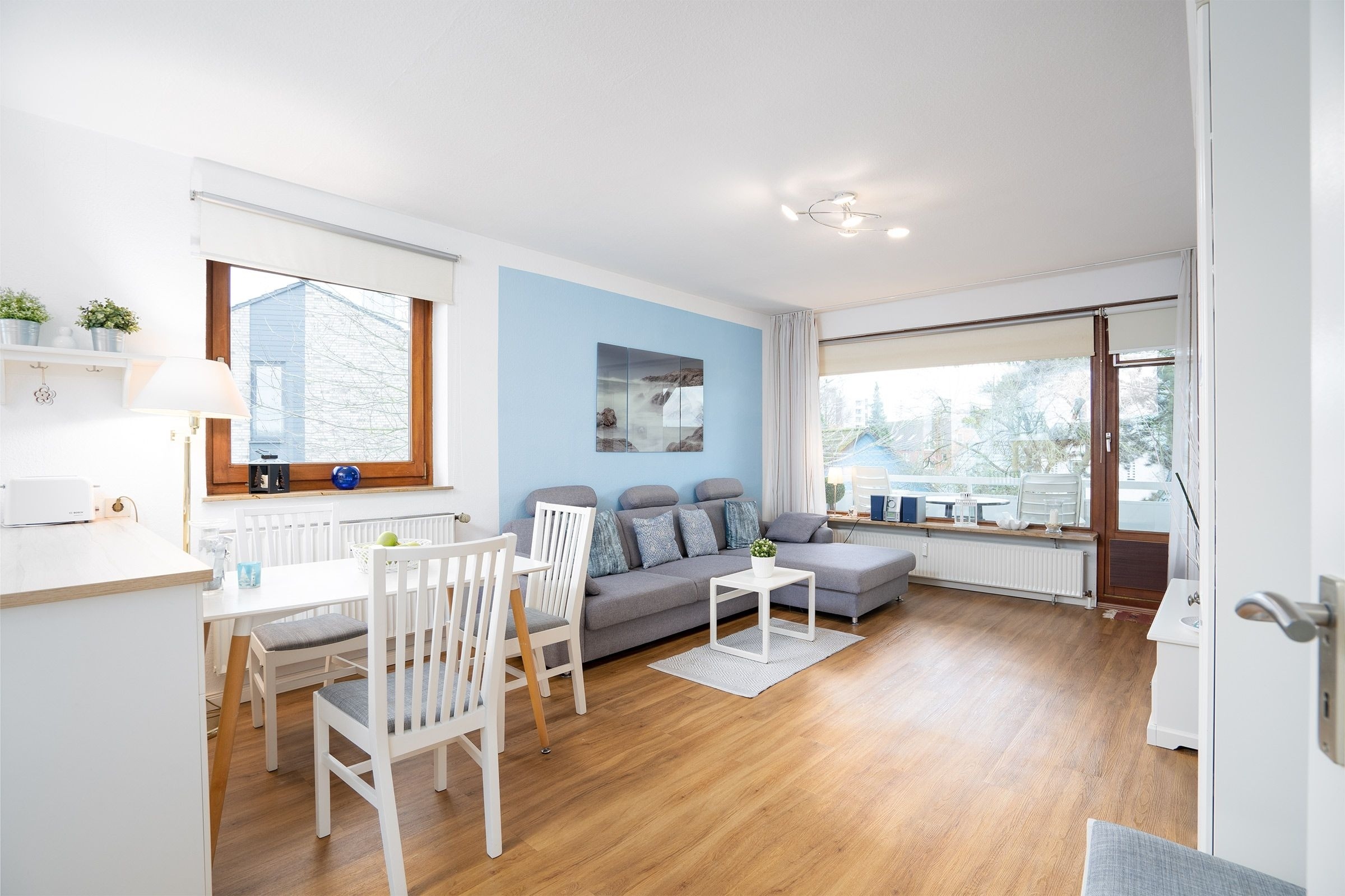 In bester Lage von Kellenhusen: zauberhafte 3-Zimmer-Ferienwohnung (ca. 59 m²) für bis zu 4 Personen im 1. Stock mit Balkon.