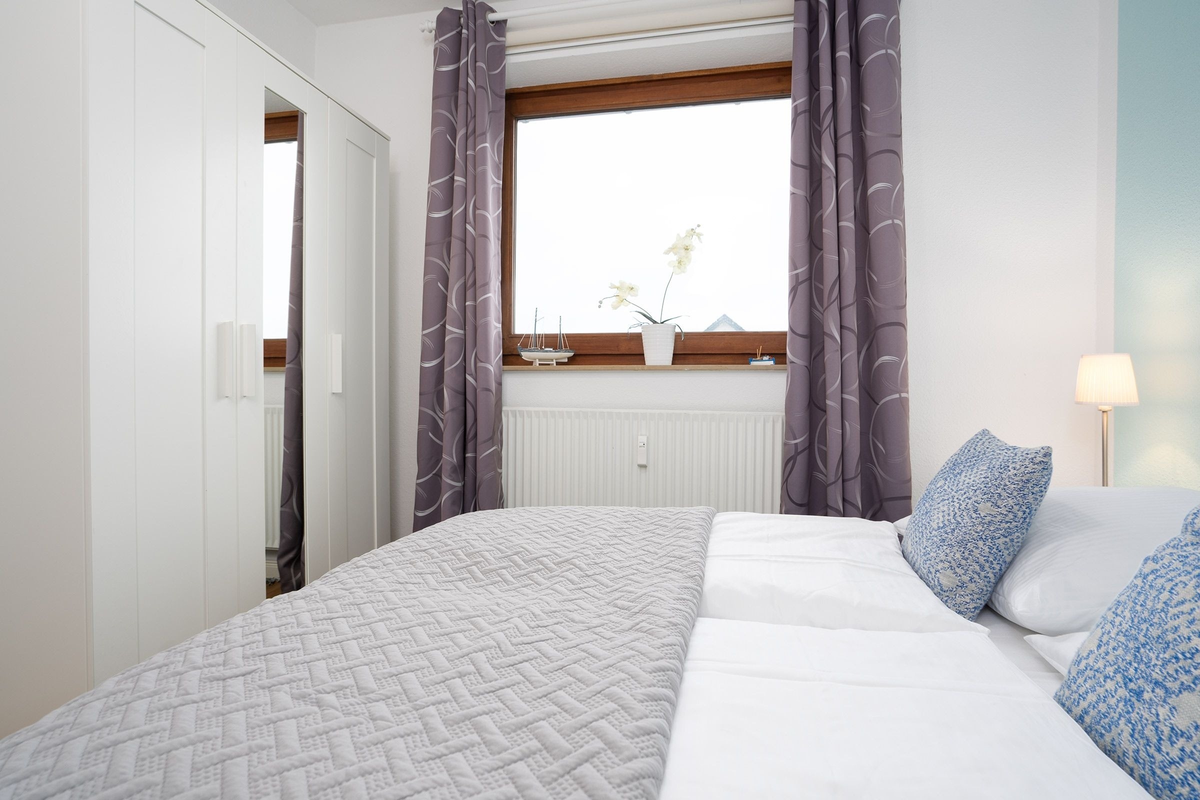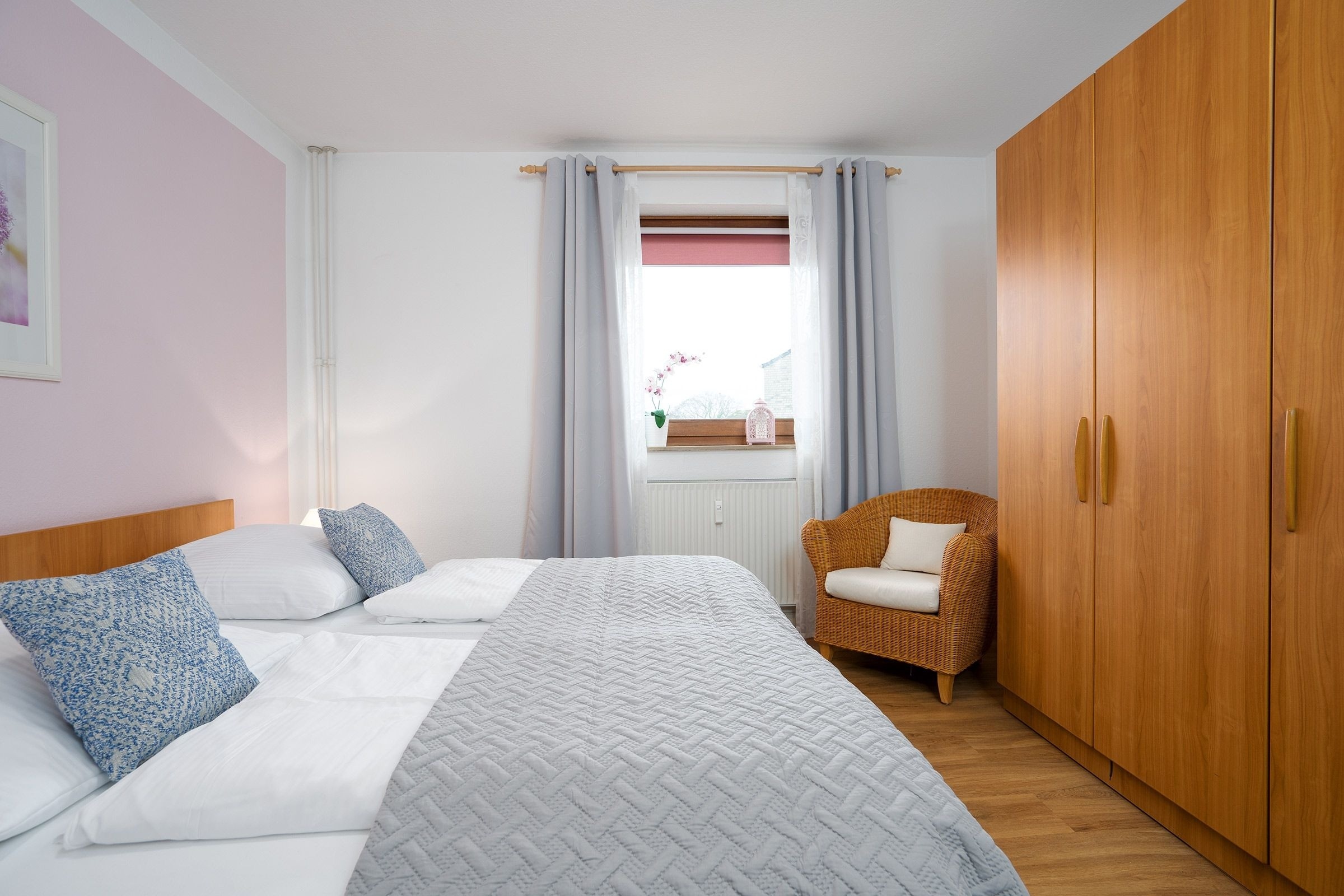 Schlafzimmer 2: 1 Doppelbett (2x 90x200 cm), Kleiderschrank, Verdunkelung (Rollo).