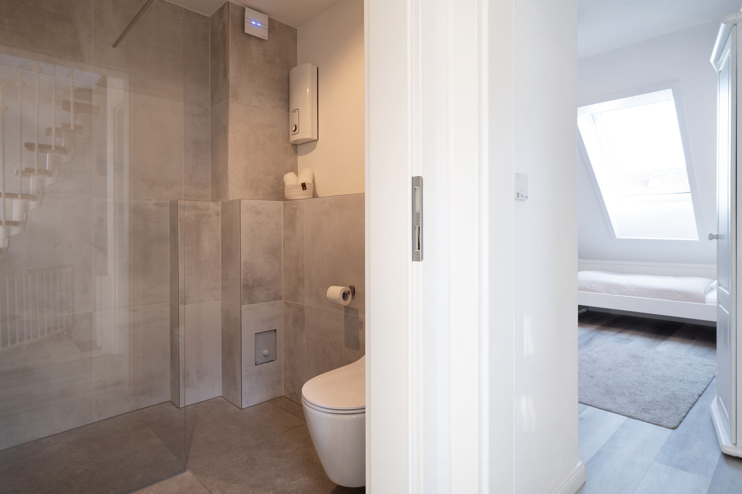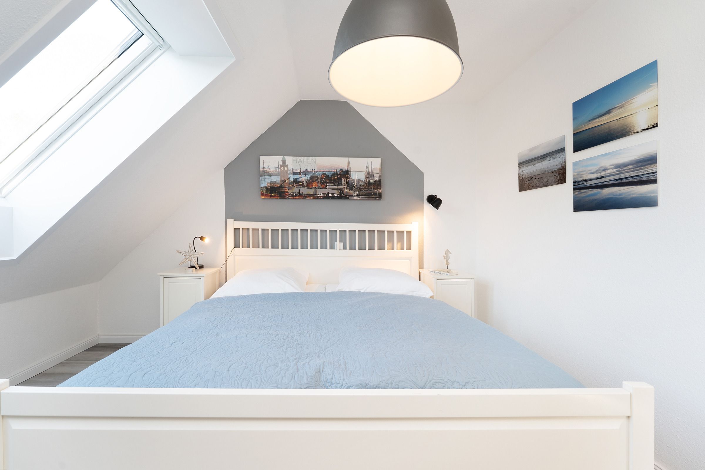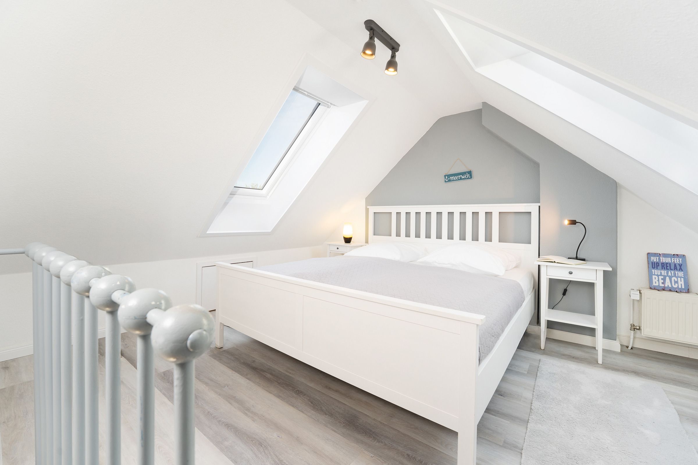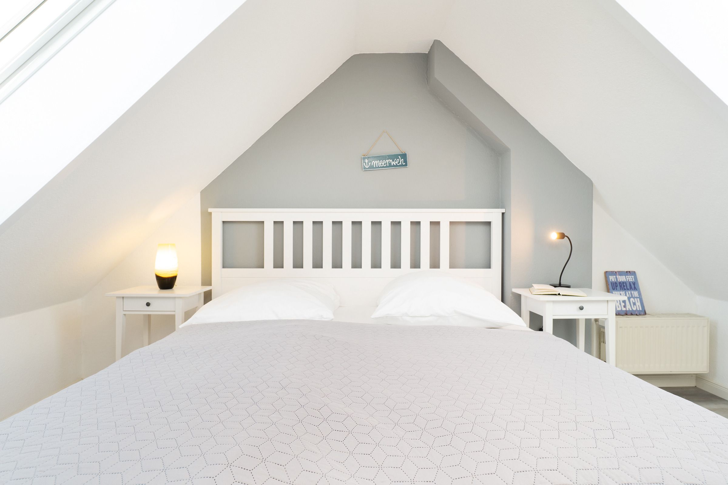 Schlafzimmer 3: (Dachgeschoss): 1 Doppelbett (2x 90x200 cm), Kommode, TV, Verdunkelung (elektrische Rollläden)