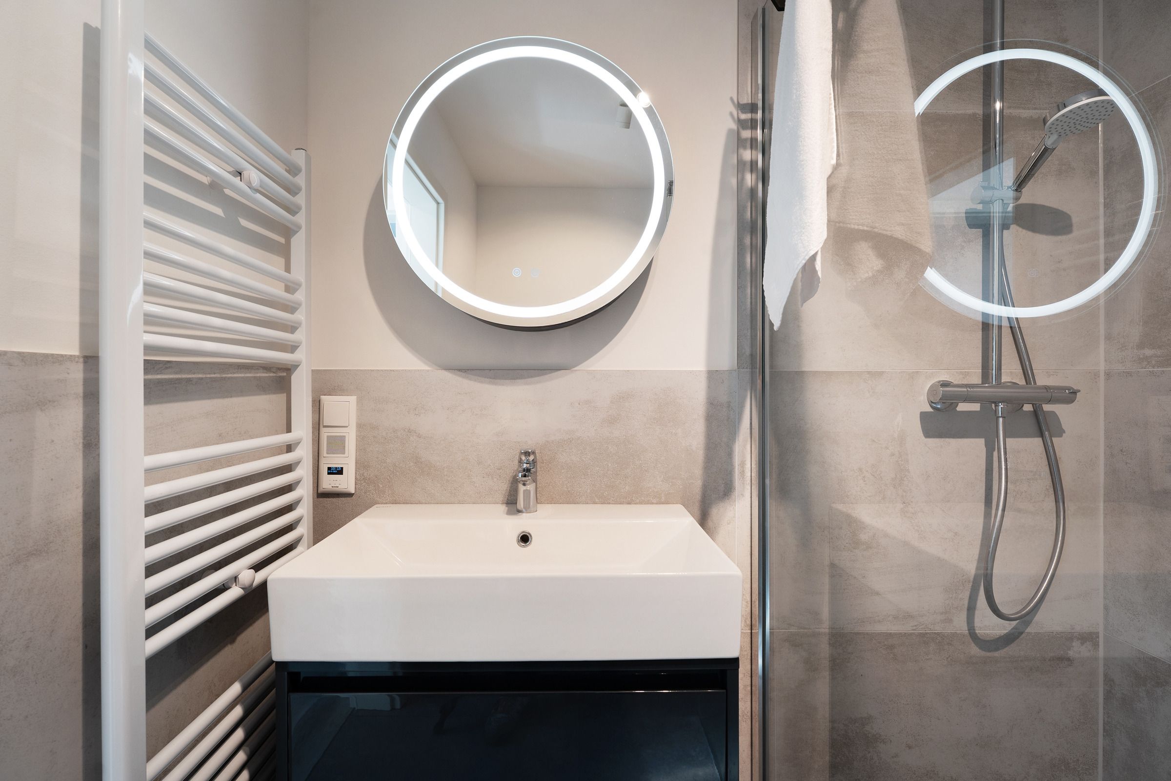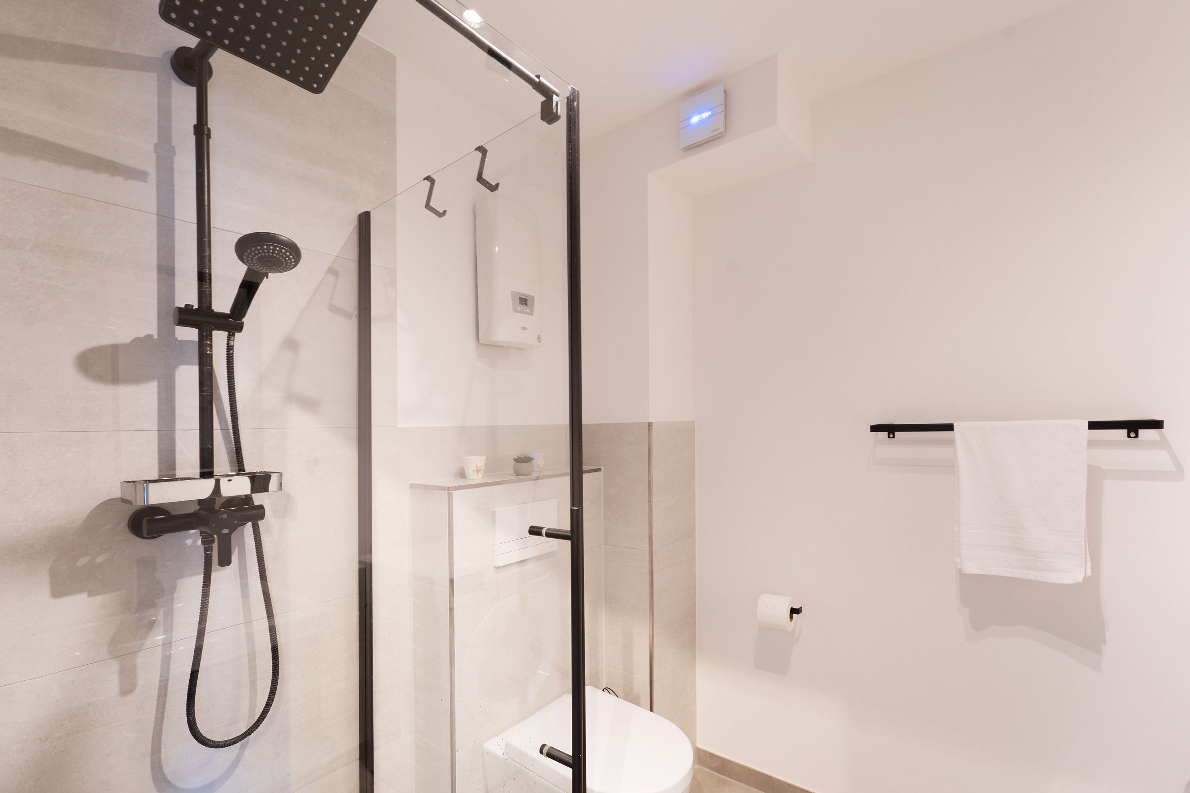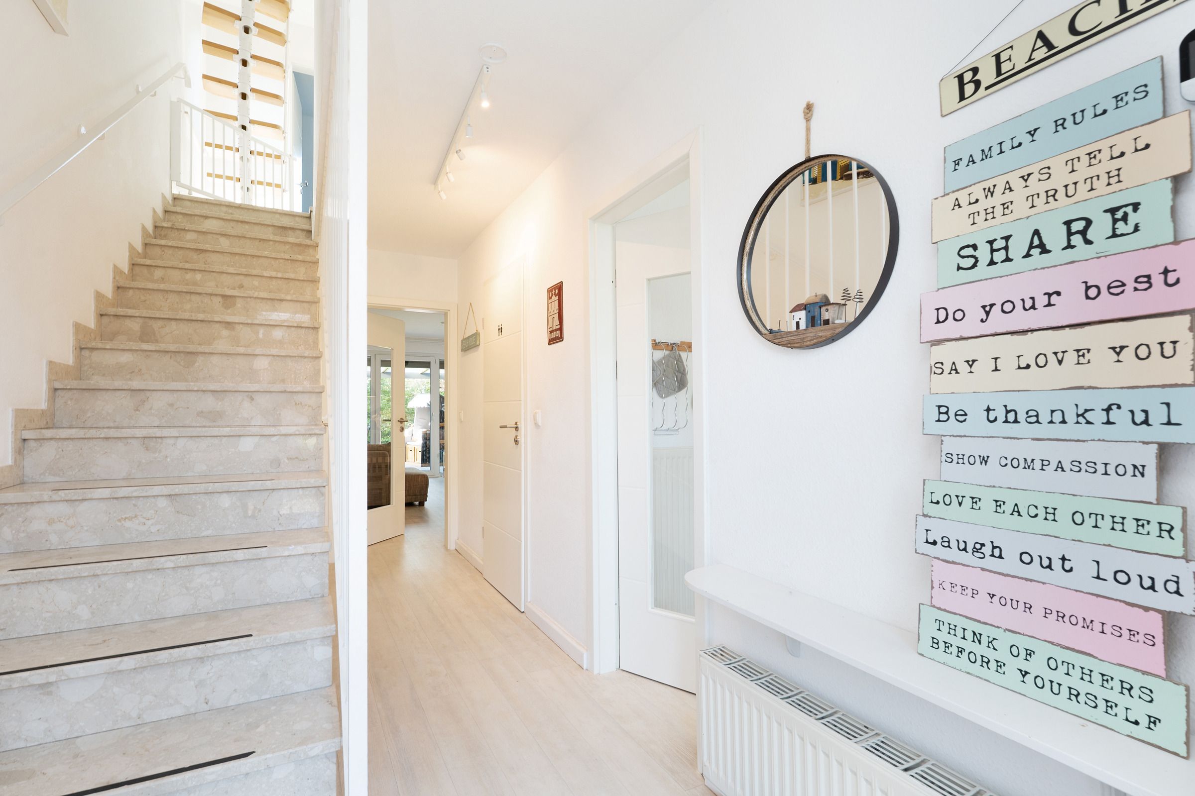 Im Erdgeschoss befindet sich das Wohnzimmer mit einer gemütlichen Couch- und Essecke, einem Fernseher und direktem Zugang zur möblierten Terrasse. Die neue Küche vermittelt Strandhaus-Feeling pur und lässt keine Wünsche offen. Die Ausstattung umfasst u. a. einen Backofen, einen Geschirrspüler, eine Einbau-Mikrowelle sowie einen großen Kühlschrank mit Gefrierfach. Weiterhin bietet Ihnen das Erdgeschoss ein modernes Duschbad mit Waschmaschine. Im ersten Obergeschoss stehen Ihnen ein Schlafzimmer mit einem Doppelbett (2x 90x200 cm) und ein weiteres Schlafzimmer mit zwei Einzelbetten (je 90x200 cm) zur Verfügung. Auf dieser Etage ist ein weiteres Badezimmer mit Dusche vorhanden. Im Dachgeschoss befindet sich ein zusätzliches, helles Schlafzimmer mit einem Doppelbett (2x 90x200 cm) und einer Kommode. Die Dachfenster verfügen über elektrische Außenrollläden. Der WLAN-Anschluss ist für Sie inklusive.