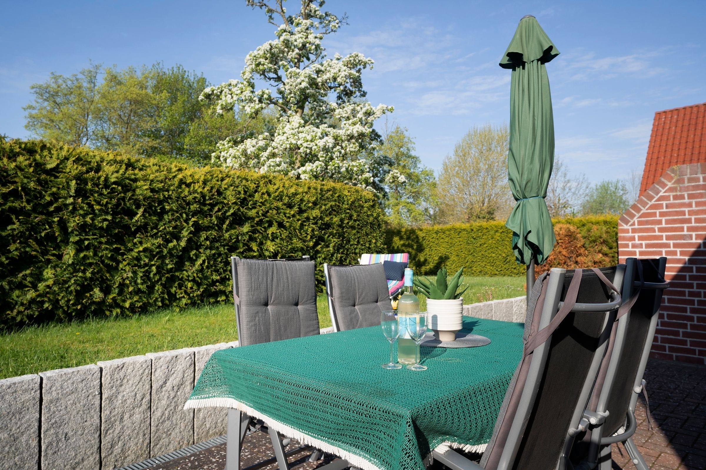 Eine Waschmaschine steht Ihnen zur Verfügung - für Ihr Auto ist ein PKW-Außenstellplatz auf dem Grundstück angelegt. Eine E-Betankung über eine Steckdose dieser Ferienwohnung ist nicht gestattet. Die Fahrräder können Sie gerne im Gartenhaus unterstellen.
