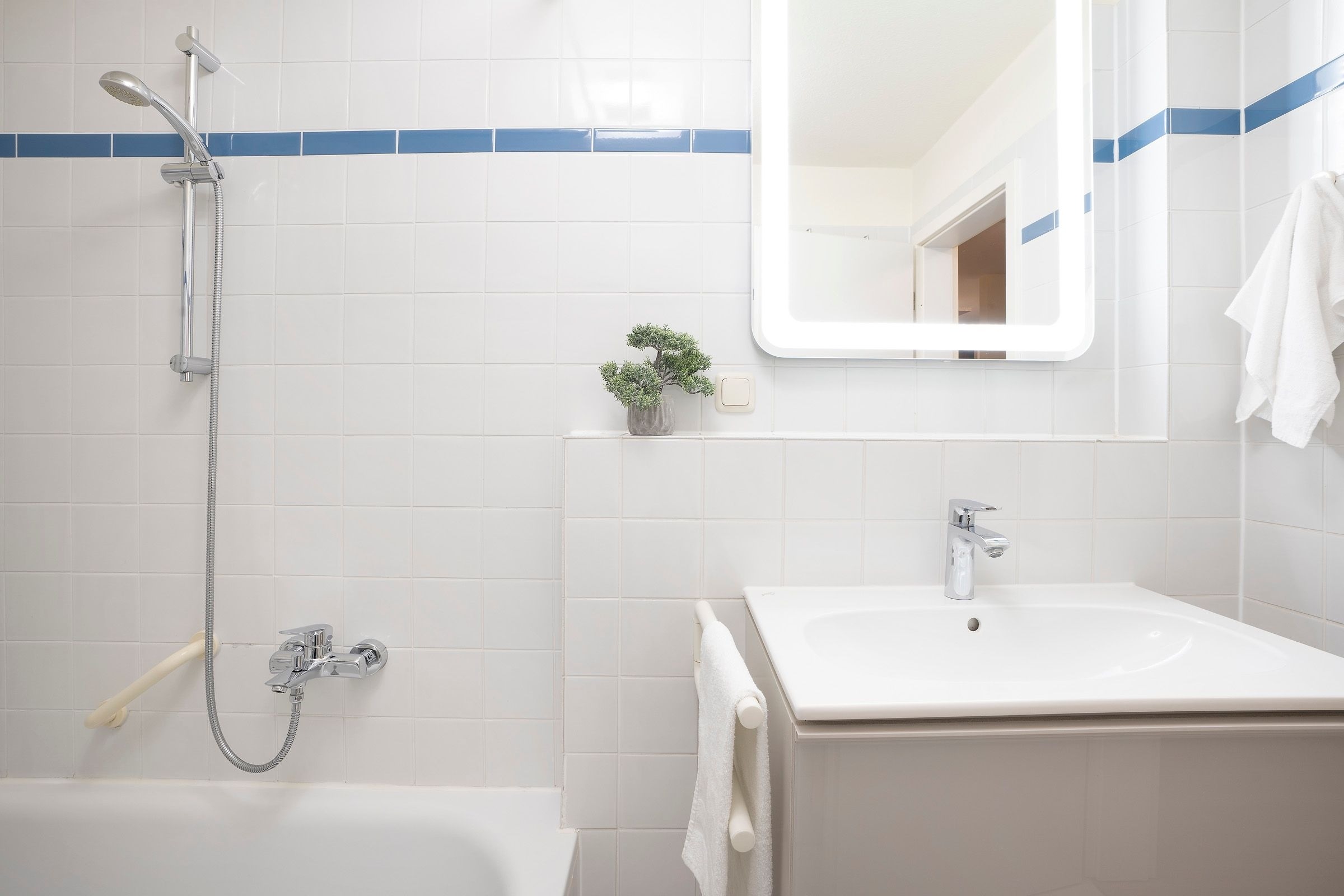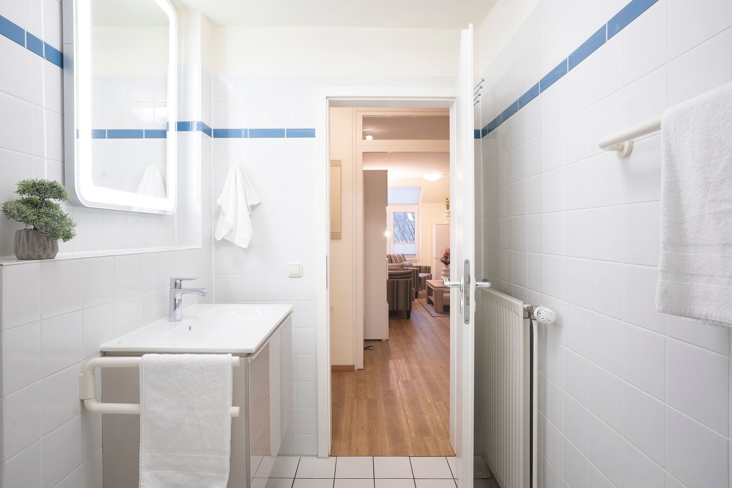 Ein PKW-Außenstellplatz am Haus ist für Sie reserviert. Waschmaschine und Trockner stehen im Haus zur Verfügung; ebenso ein Fahrradraum. WLAN ist vorhanden. Für die kleinen Gäste sind Hochstuhl und Kinderreisebett inklusive.