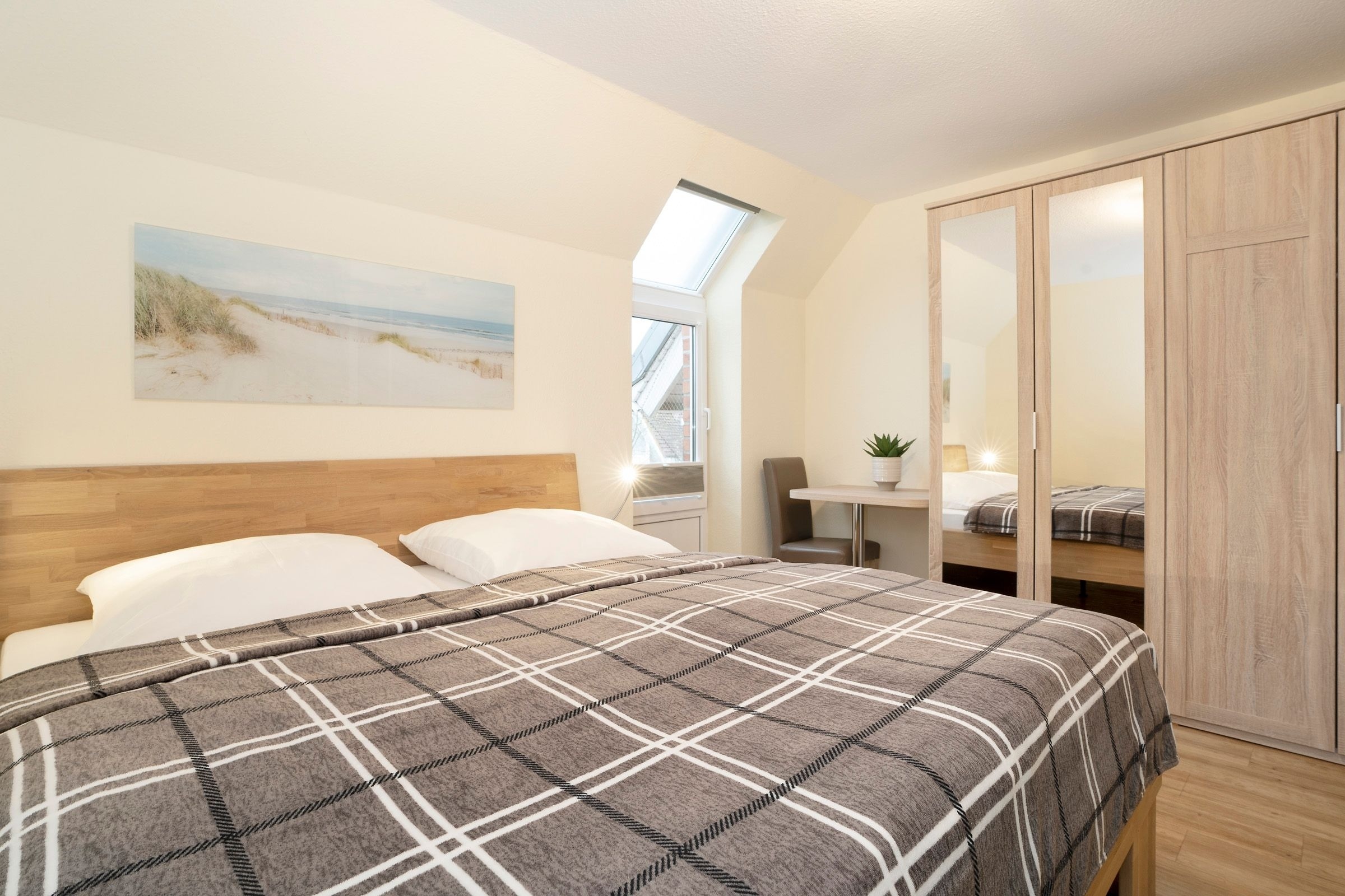 Schlafzimmer: 1 Doppelbett (2x 90x200 cm), Kleiderschrank, Verdunkelung (Plissees)