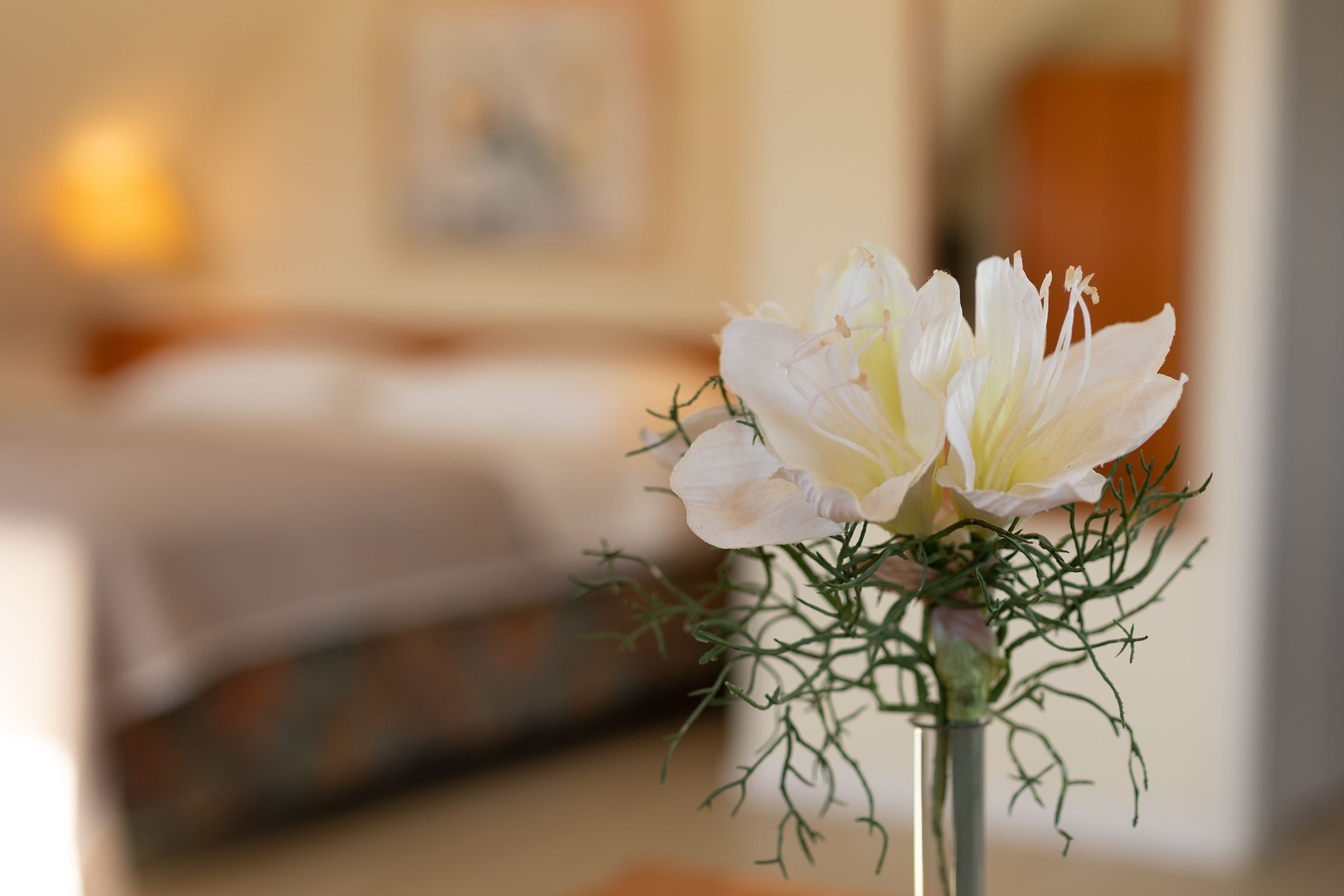 Wohn/ Schlafraum: 1 Doppelbett (2x 90x200 cm), Kleiderschrank, TV, Verdunkelung (Plissees)