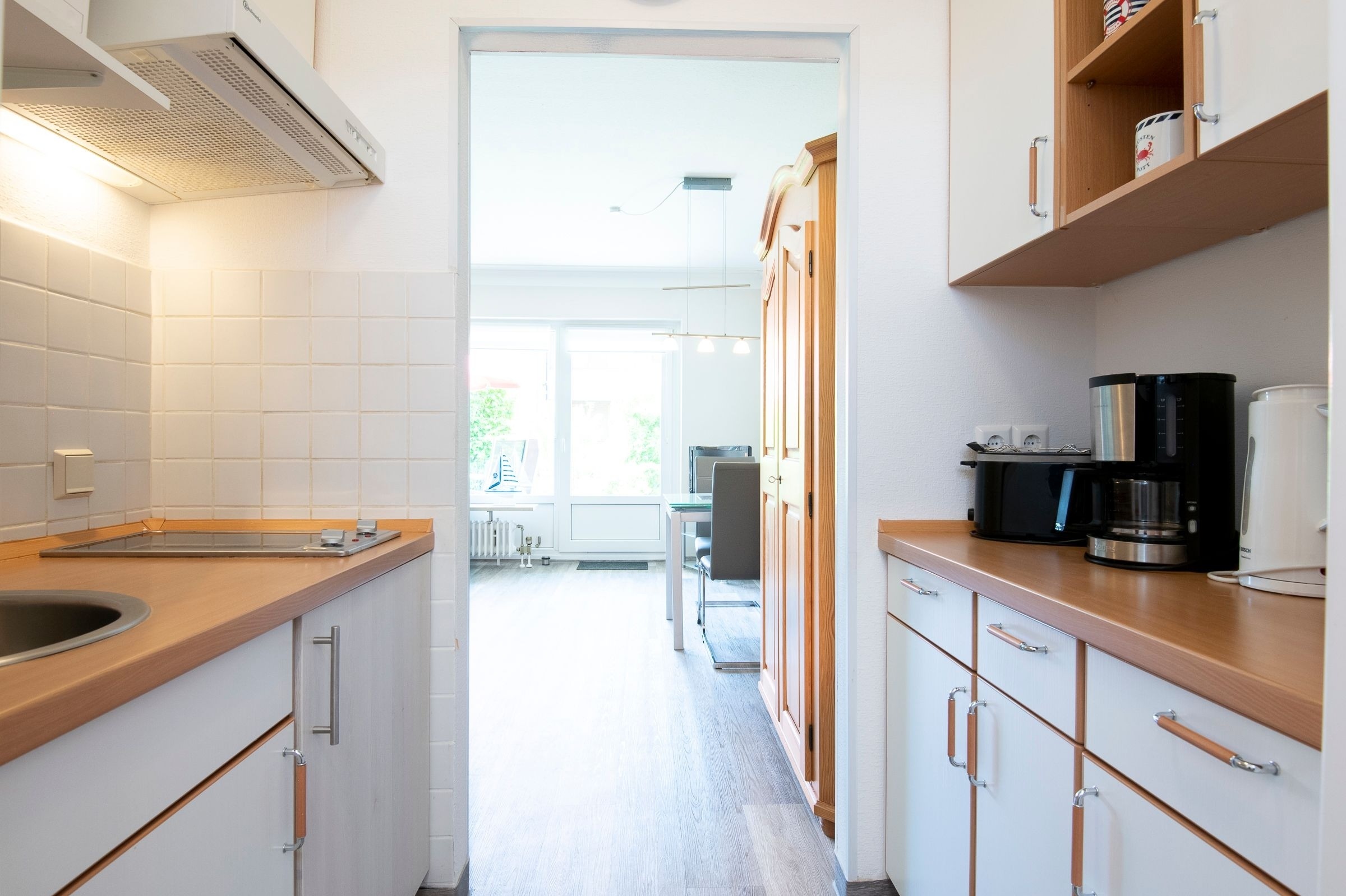 Die Wohnung verfügt über ein Wohn-/ Schlafzimmer mit Ecksofa, TV (Kabelanschluss), Esstisch und einem Kleiderschrank. Als Schlafmöglichkeit dient die Schrankwand mit ausklappbaren Betten (2x 90x200 cm). Die Küche ist zum Wohnzimmer offen und ist mit allen Notwendigkeiten wie z. B. Kaffeemaschine, Toaster, Wasserkocher und Kühlschrank ausgestattet. Ein hell gefliestes, innenliegendes Badezimmer mit Dusche und WC ist ebenfalls vorhanden. Viele schöne Stunden können Sie auf der sonnigen Terrasse verbringen...
