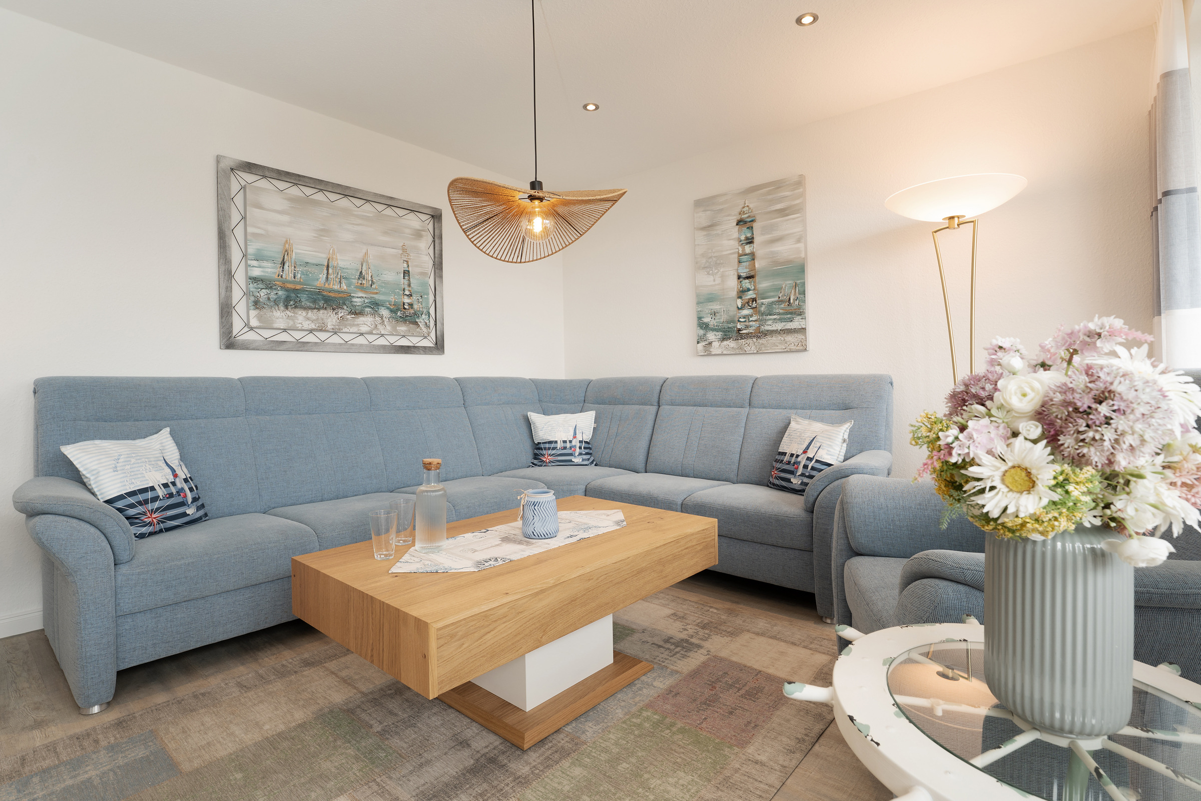 Gemütlichkeit kennt hier keine Grenzen – die helle Ferienwohnung Muschelblume im gepflegten Ferien-Wohnpark Kaiserhof bietet seinen Gästen viel Platz zum Entspannen und Erholen. Angefangen mit der kuscheligen Sofa-Landschaft, die um die Ecke führt. Legen Sie die Füße hoch und genießen Sie den schönen Blick durch die große Glasfront. Hier haben Sie auch Zugang zur möblierten Terrasse. Sitzen Sie hier gemütlich in der Sonne zusammen und überlegen Sie sich, wie Sie Ihre Urlaubstage gestalten möchten. Der Strand ist nur rund 120 Meter entfernt – und natürlich lockt die Küste mit tollen Ausflugszielen. Zurück im Wohnbereich finden Sie um die Ecke die offene, gut ausgestattete Küche mit Spülmaschine. Probieren Sie hier neue Rezepte der Region aus und nehmen Sie Platz in der komfortablen Sitz-Ecke. Ein schöner Anker-Platz zum Genießen. Nach einem erlebnisreichen Tag an der Ostsee stehen Ihnen 3 Schlafräume zur Verfügung: In einem Zimmer steht ein Doppelbett (2x 90x200 cm), in einem Zimmer befinden sich ein Doppelbett (2x 90x200 cm) sowie ein Babybett. Und ein Zimmer verfügt über ein Einzelbett (90x200 cm) und ein zusätzliches TV-Gerät. Ein helles Duschbad mit Fenster sowie ein Gäste-WC runden das Angebot ab.