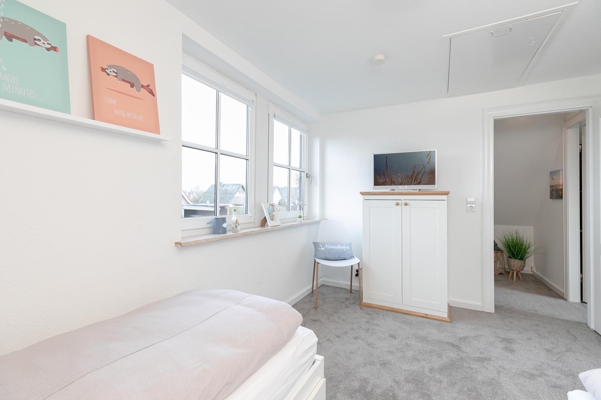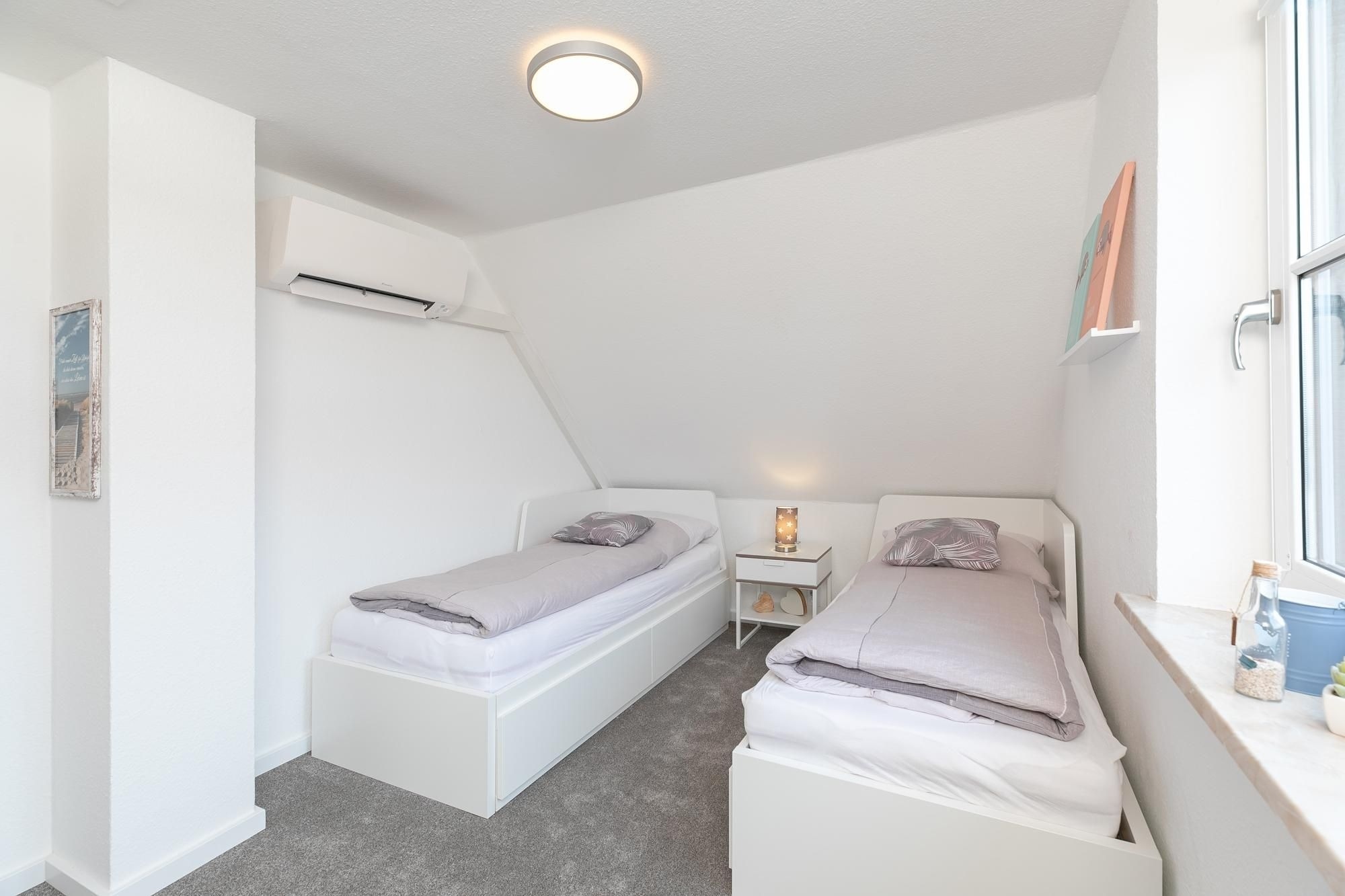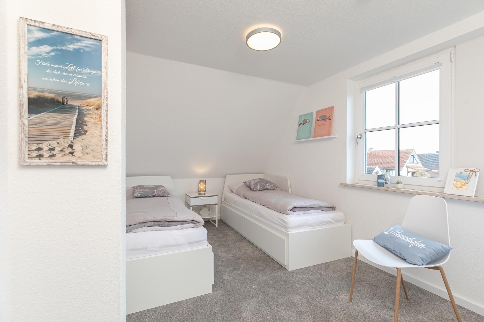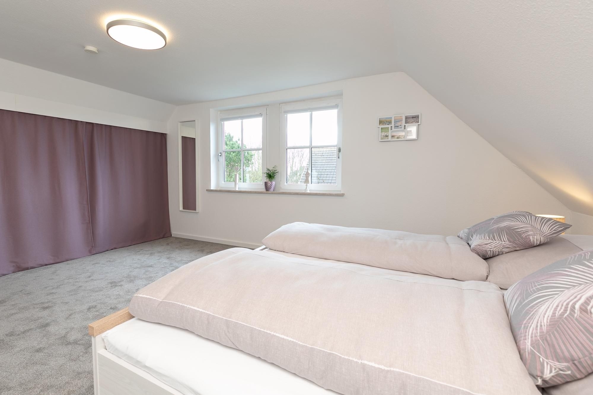 Schlafzimmer 2: 2 Einzelbetten (je 90x200 cm), TV, Verdunkelung, Plissees