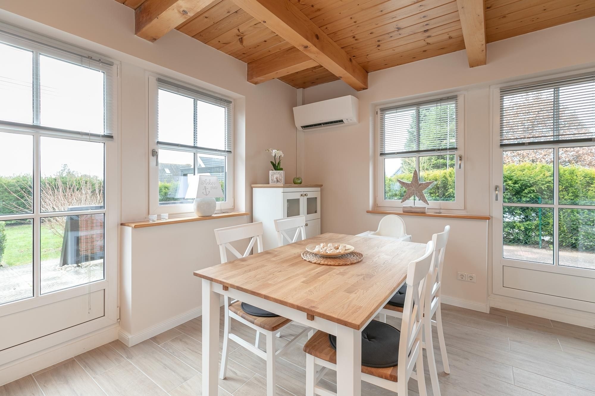 Zauberhaftes, geschmackvoll eingerichtetes 3-Zimmer-Fachwerkhaus für bis zu 4 Personen in unmittelbarer Strandnähe. Die Wohnfläche von ca. 65 m² verteilt sich auf 2 Schlafzimmer, Badezimmer, sowie einen offen gestalteten Wohn- / Essbereich.