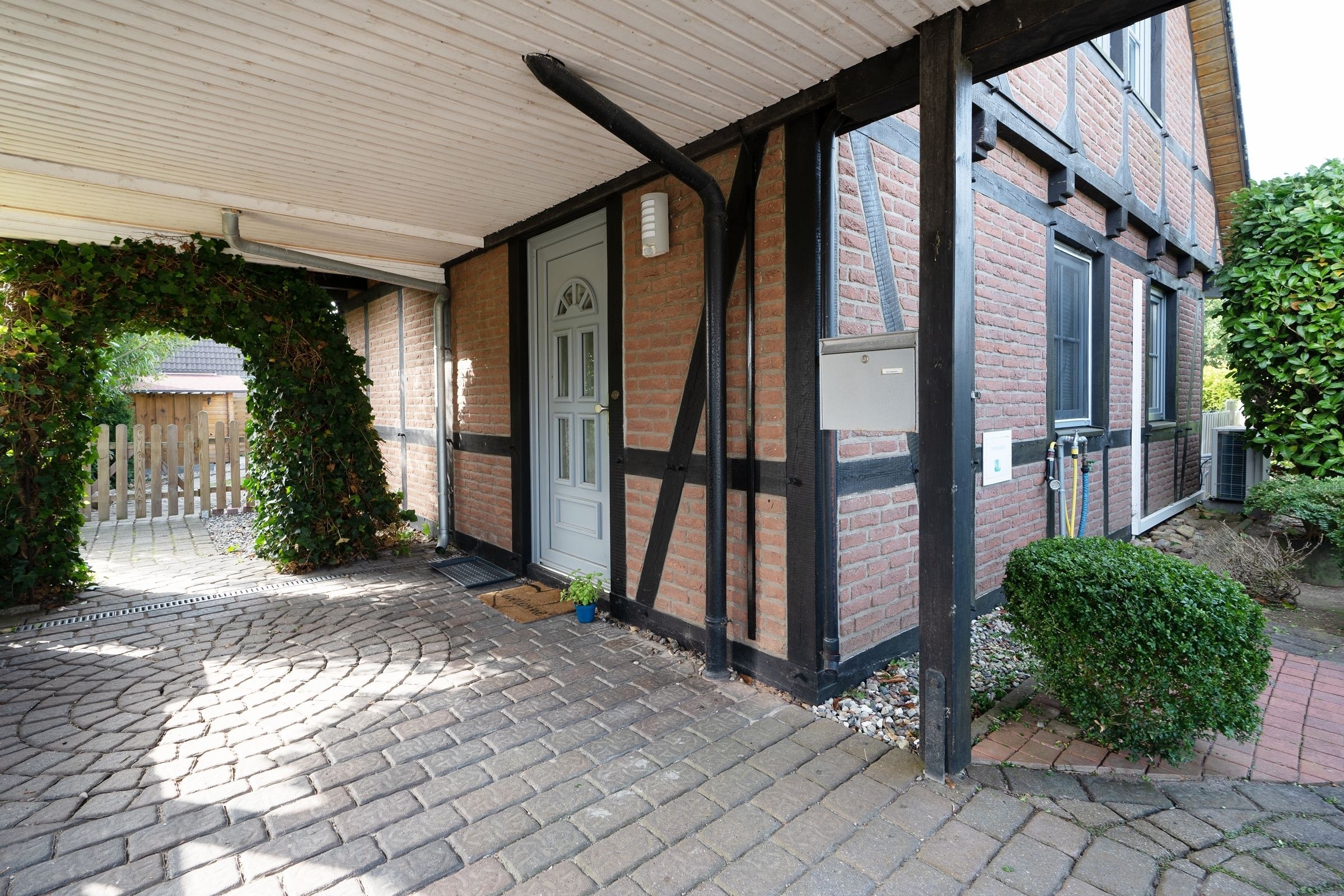 Der seitliche Carport bietet einen vorteilhaft überdachten Hauseingang.