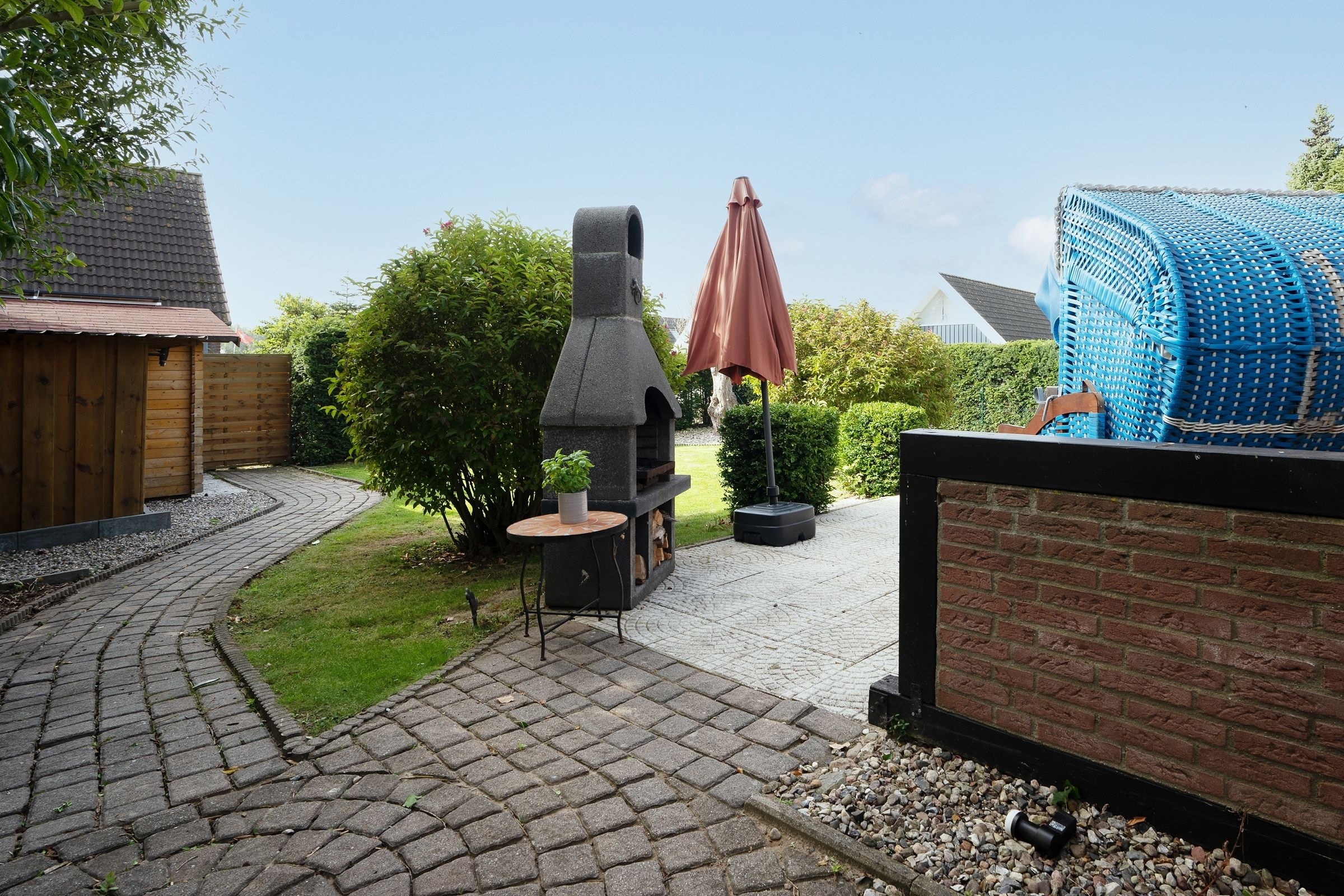 Das malerisch angelegte Grundstück ist nicht einsehbar und bietet mit großer ausbruchsicherer Gartenfläche und zwei Terrassen mit gemütlichen Sitzecken viel Privatsphäre zum Entspannen. Ein Grill ist vorhanden, genießen Sie gesellige Barbecue Abende oder den ersten Kaffee am Morgen mit Sonne im Gesicht und Ostseebrise in der Nase.