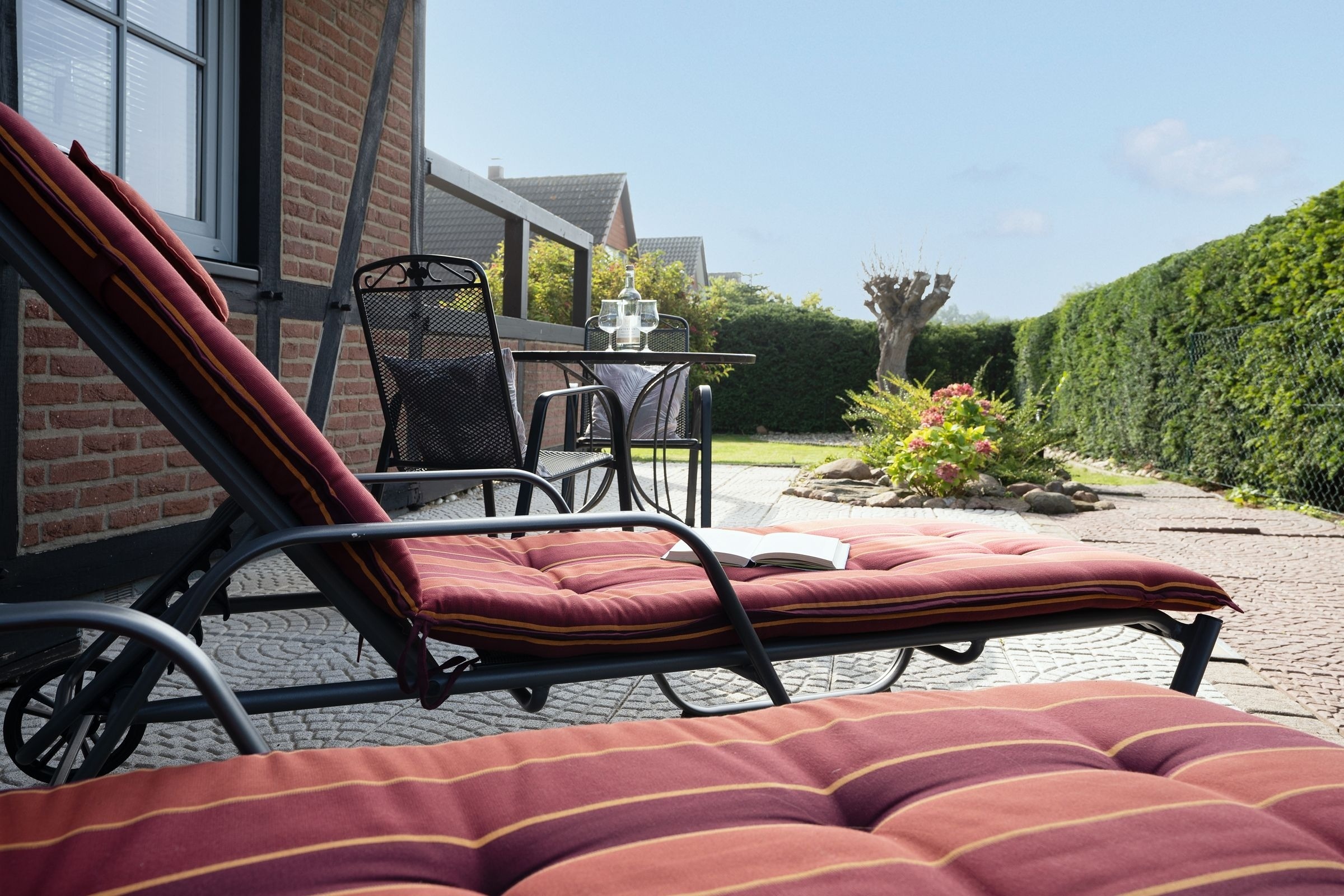 Lassen Sie den Tag auf der Terrasse mit eigenem Strandkorb entspannt ausklingen.