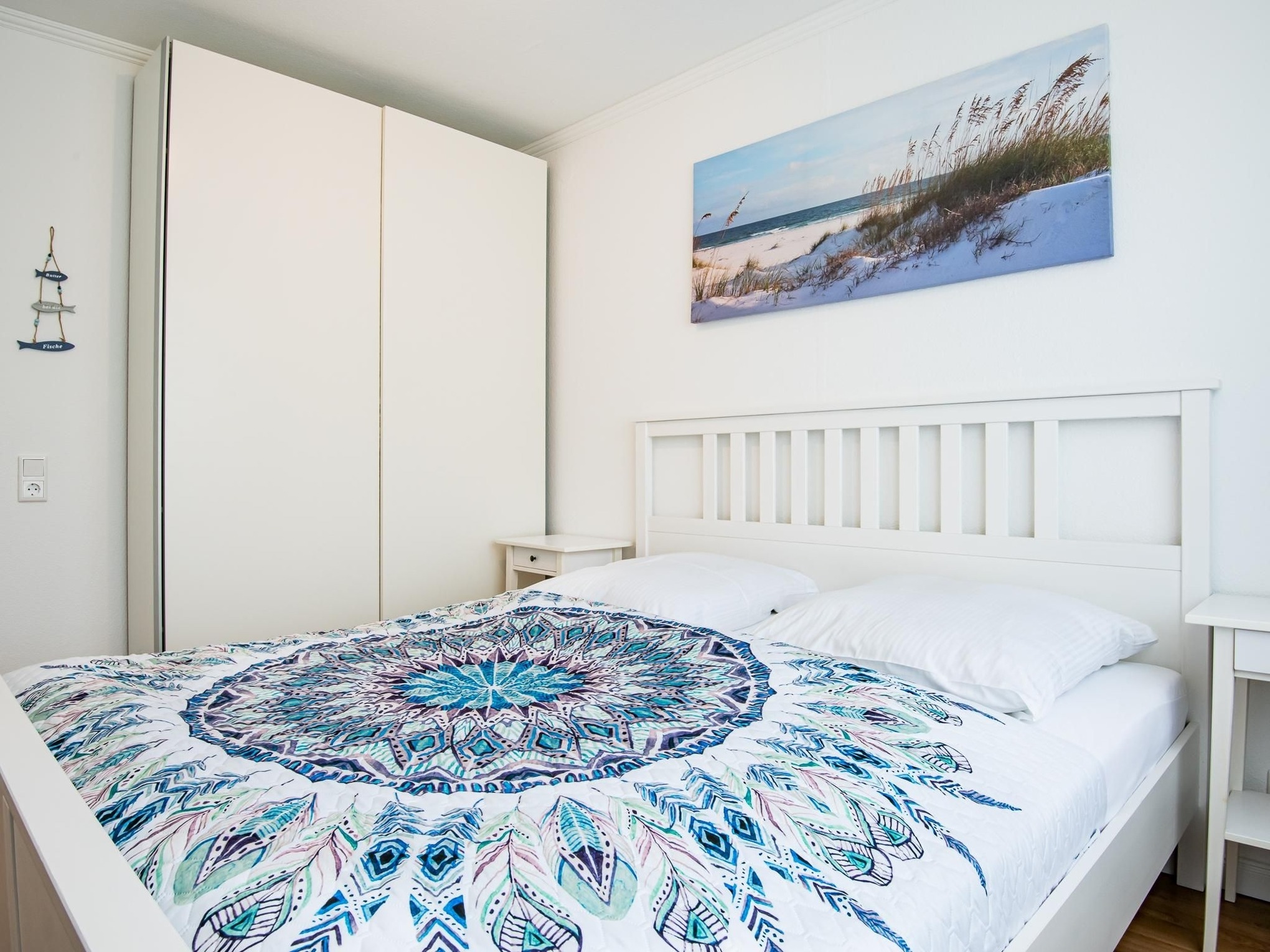 Schlafzimmer: 1 Doppelbett (180x200 cm), TV, Kleiderschrank, Verdunkelung (elektrische Außenrollläden)