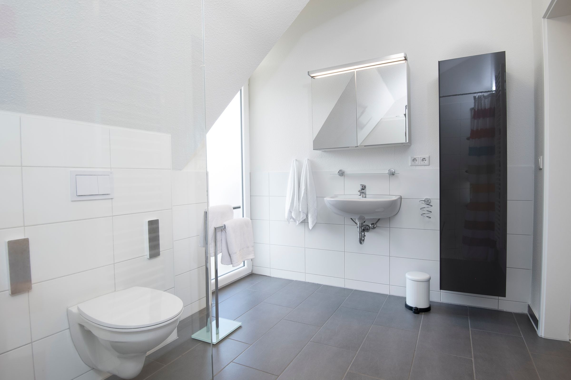 Ein eigener PKW-Außenstellplatz befindet sich direkt hinter dem Gebäude. Ihre Fahrräder können Sie im abschließbaren Fahrradkeller unterbringen. Ein kostenfreier WLAN-Anschluss ist vorhanden. Das Haus verfügt über einen Fahrstuhl sowie barrierearme Zugänge. Waschmaschine und Trockner stehen zu Ihrer Nutzung im Waschraum des Hauses bereit. Eine Entkalkungsanlage sorgt im ganzen Haus für natürlich weiches Wasser.