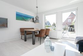 4-Zimmer-Ferienwohnung mit ca. 62 m² Wohnfläche und Terrasse, ausgelegt für bis zu 4 Personen.